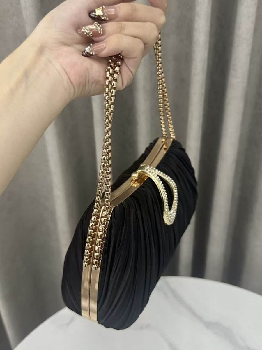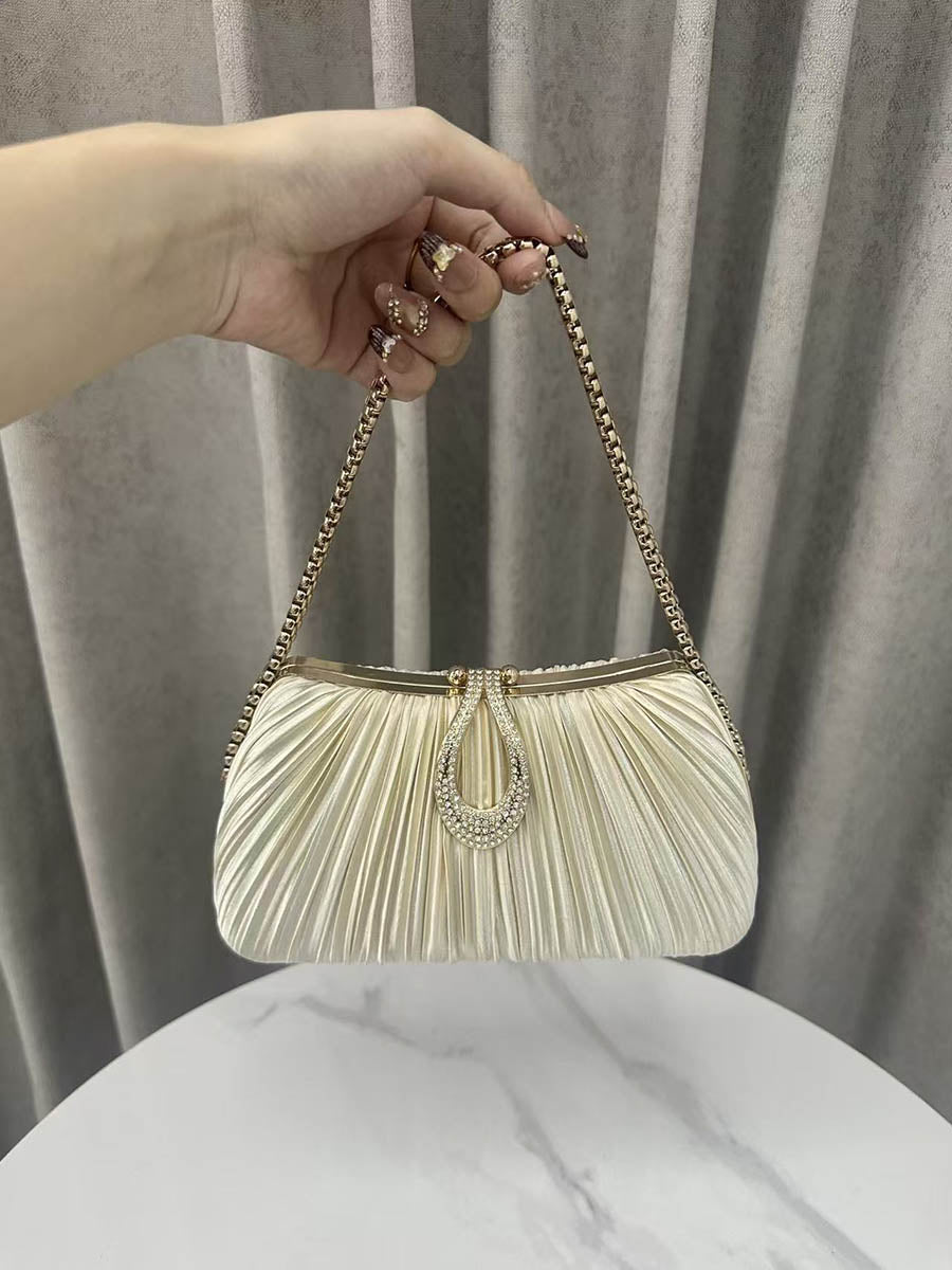 Chains Lock Pleated Rhine Stones Shiny Crossbody Bags Evening Bags & Clutches