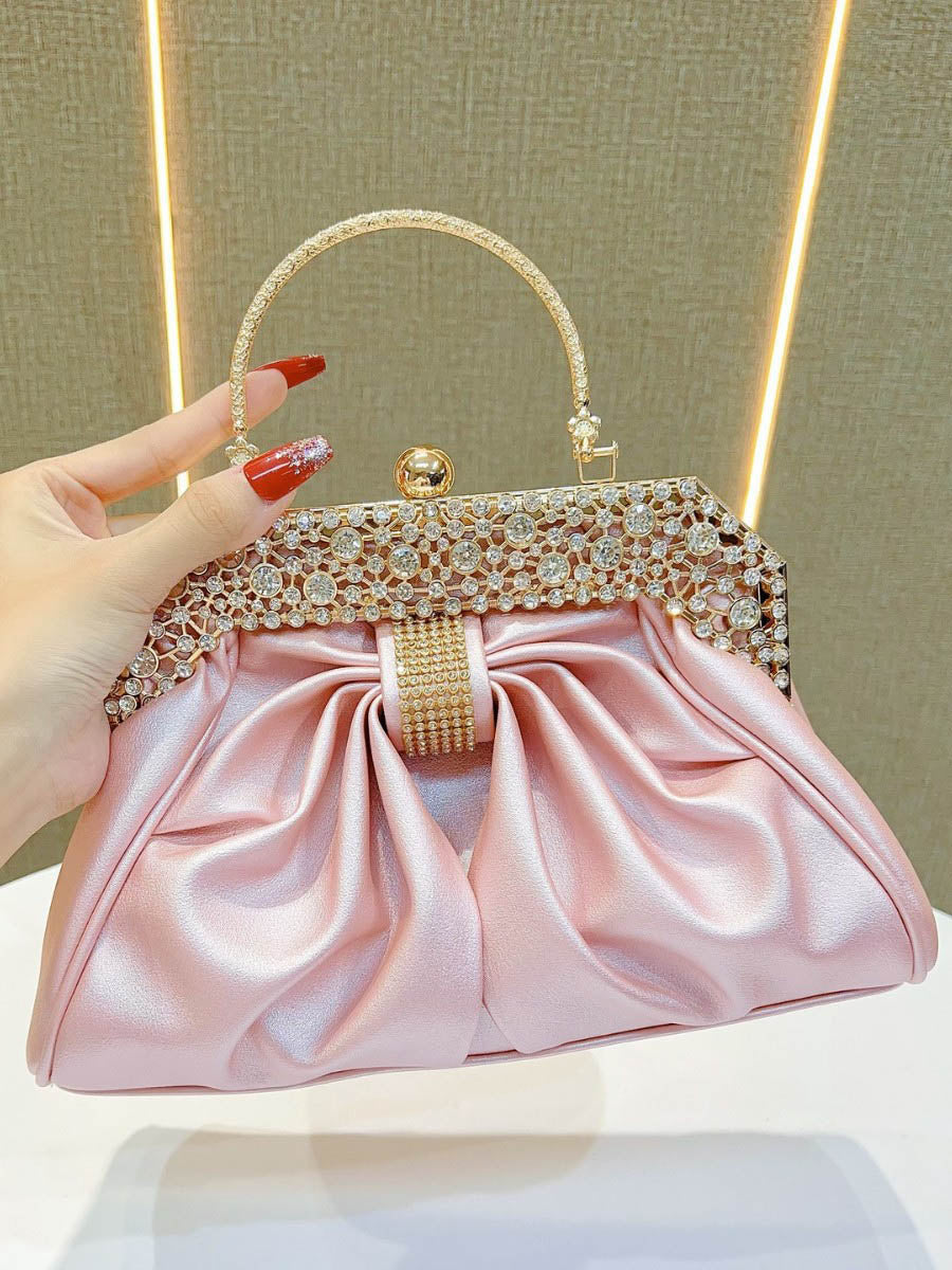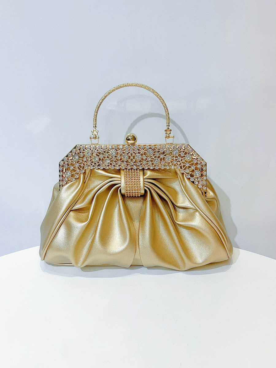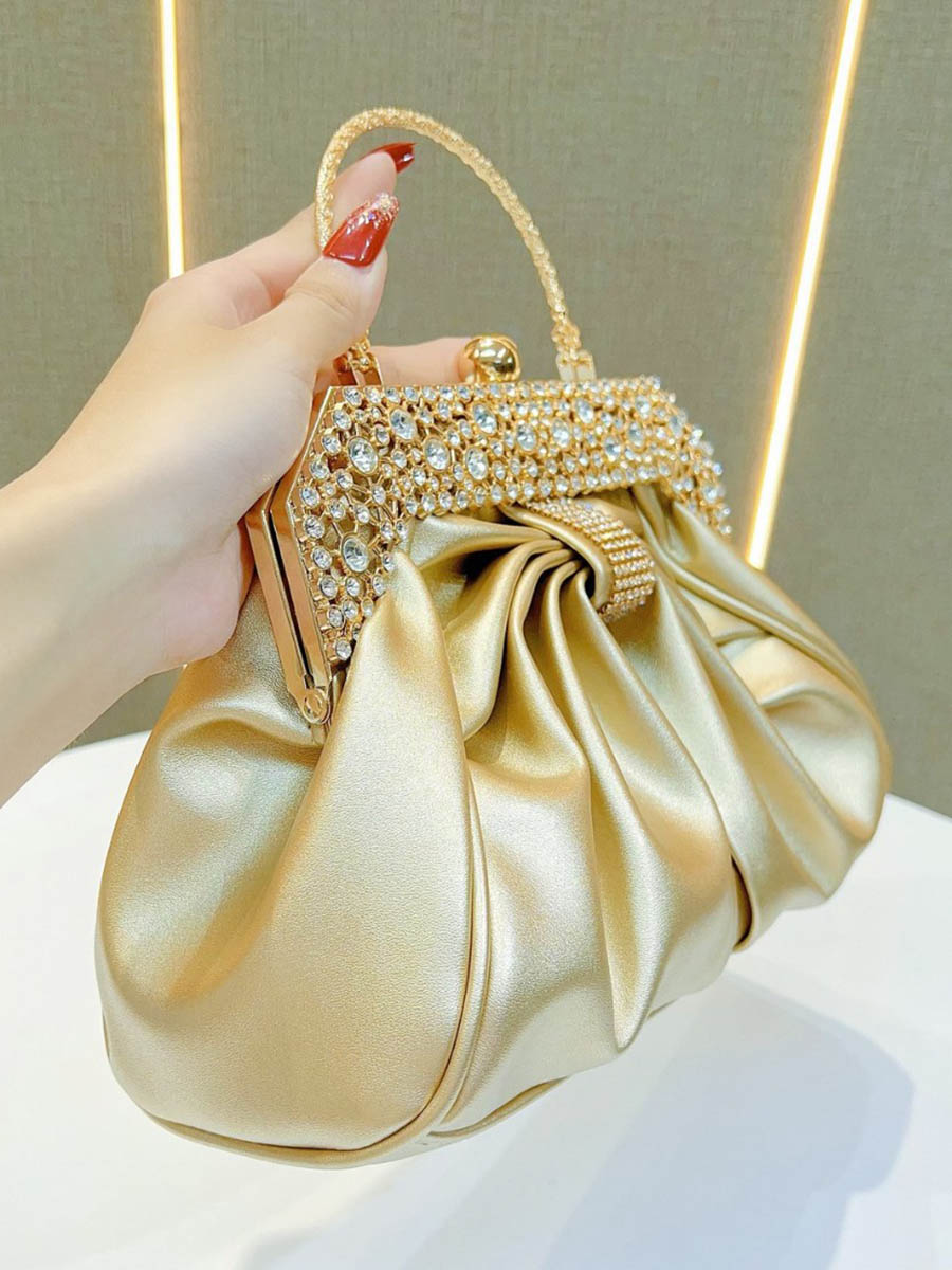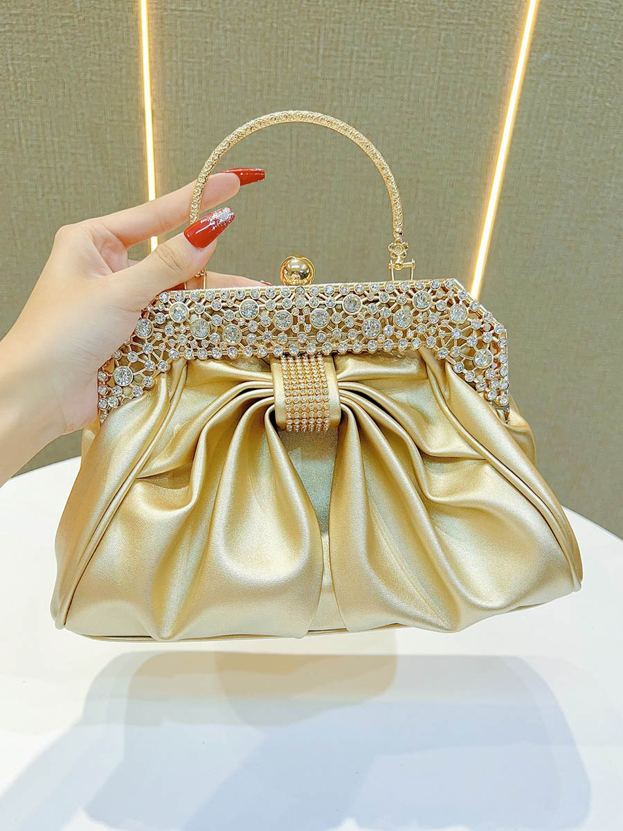 Chains Pleated Rhine Stones Split-Joint Evening Bags & Clutches Handbags