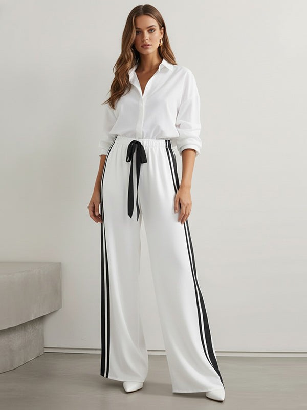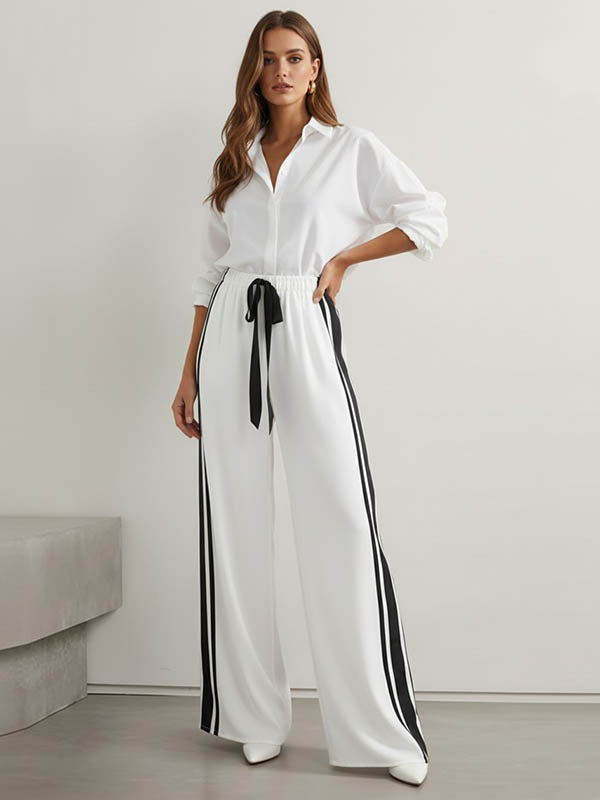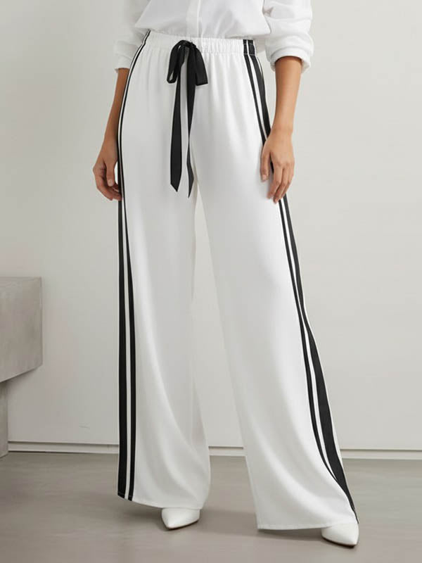 Elasticated Waist High Waisted Contrast Color Drawstring Split-Joint Line Pants