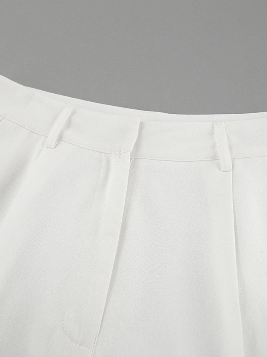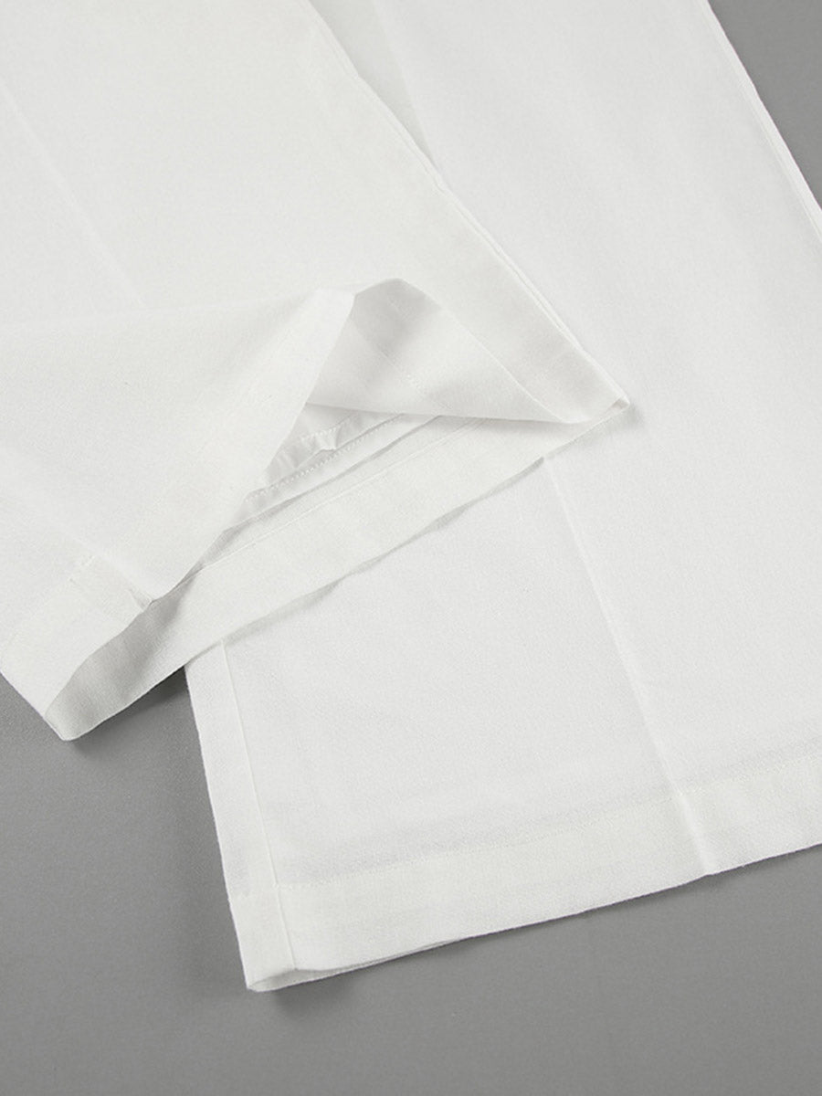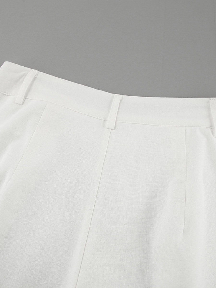 Elasticated Waist High Waisted Pleated Solid Color Split-Joint Pants