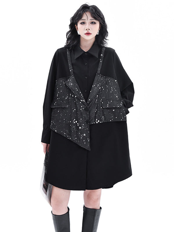 False Two Hipster Asymmetric Split-Joint Textured Lapel Collar Mini Dresses