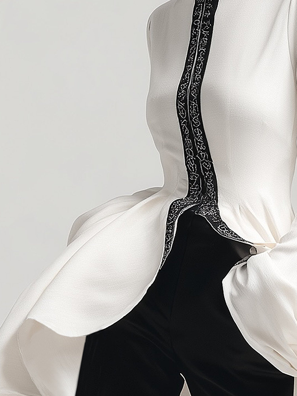 Flared Sleeves High-Low Falbala Stand Collar Blouses&Shirts Tops