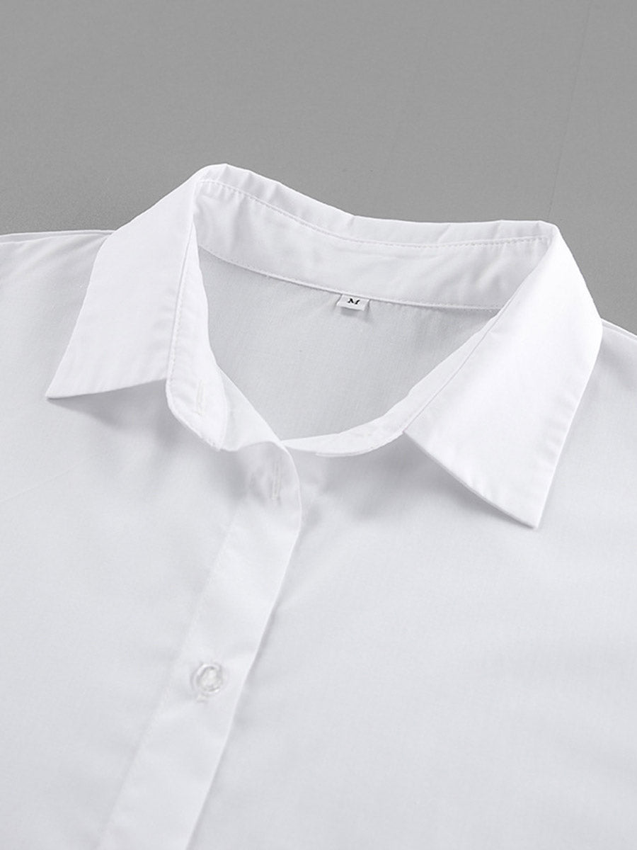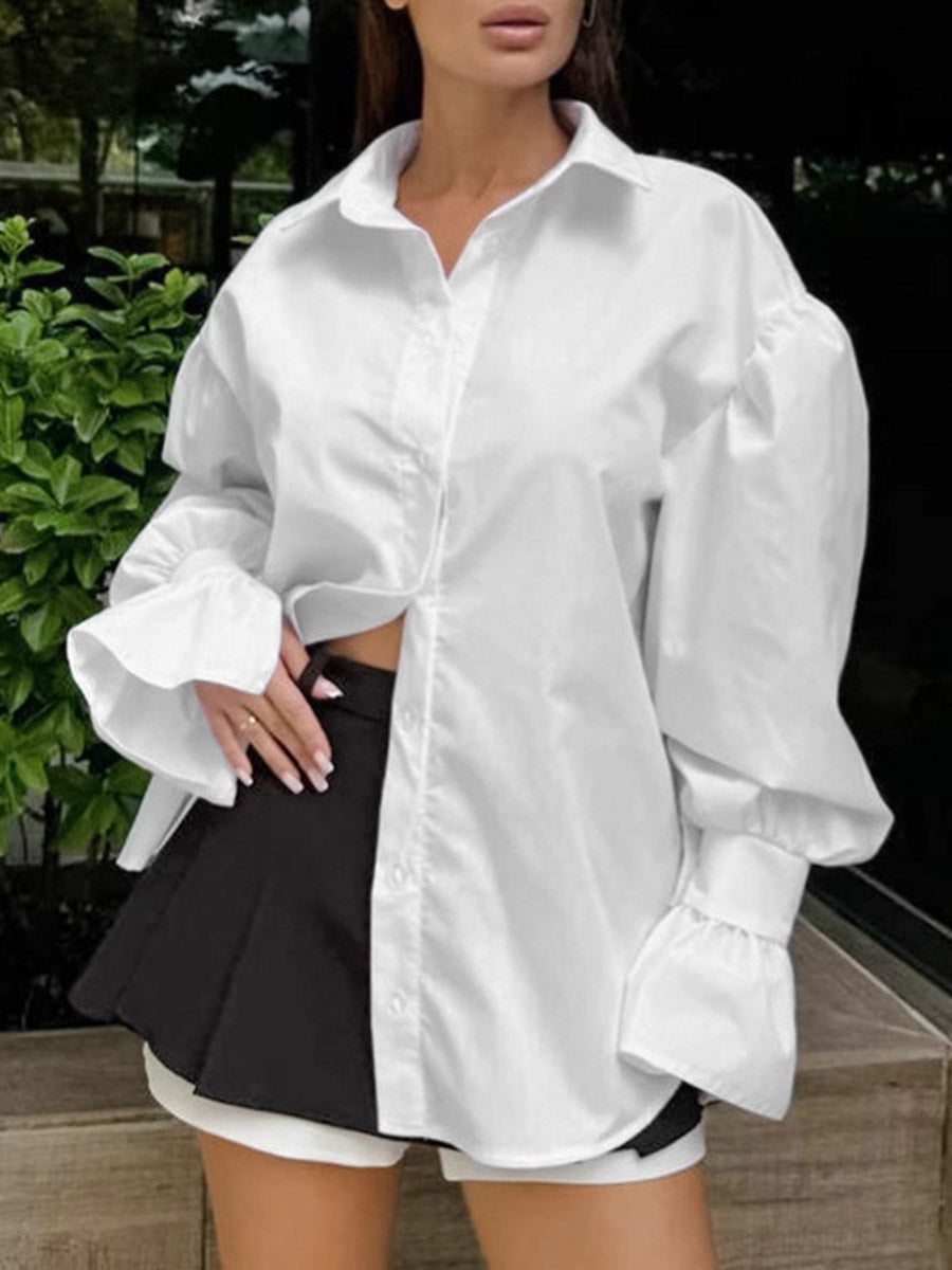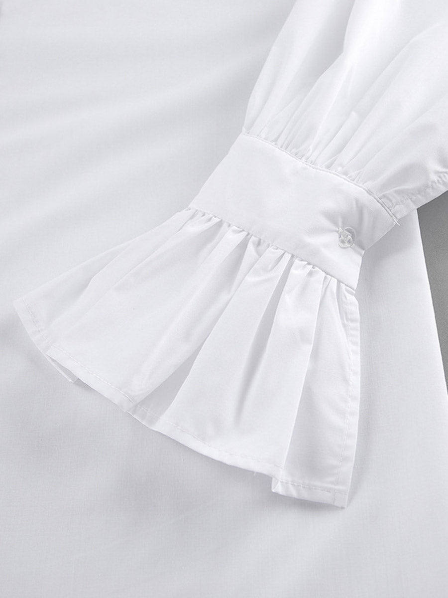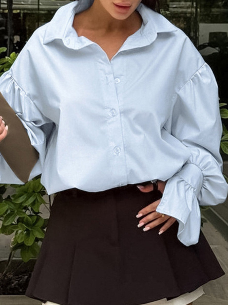 Flared Sleeves Long Sleeves Buttoned Pleated Solid Color Split-Joint Lapel Blouses&Shirts Tops