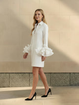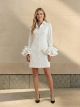 Flared Sleeves Long Sleeves Buttoned Solid Color Lapel Mini Dresses