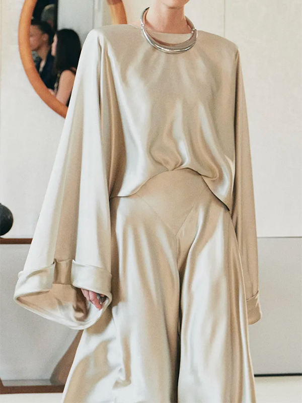 Flared Sleeves Long Sleeves Solid Color Round-Neck T-Shirts Tops