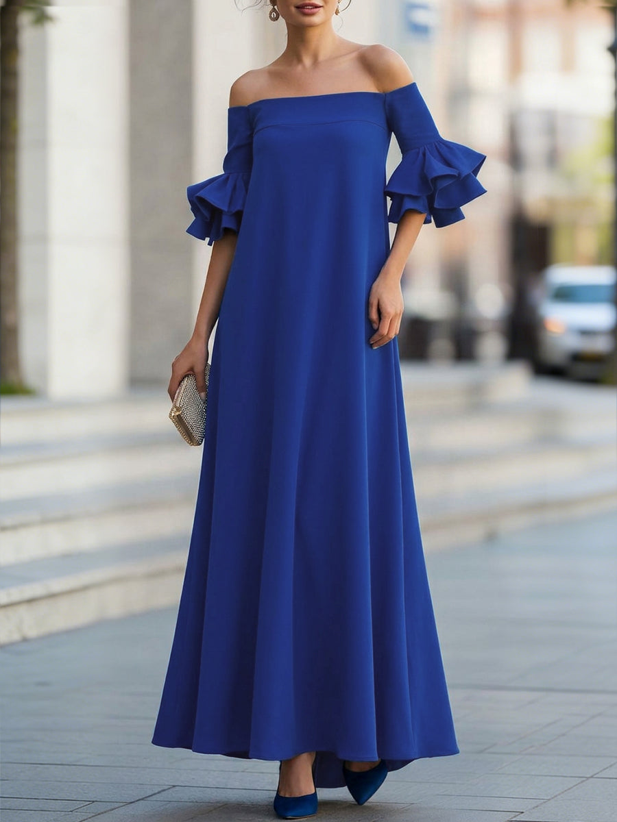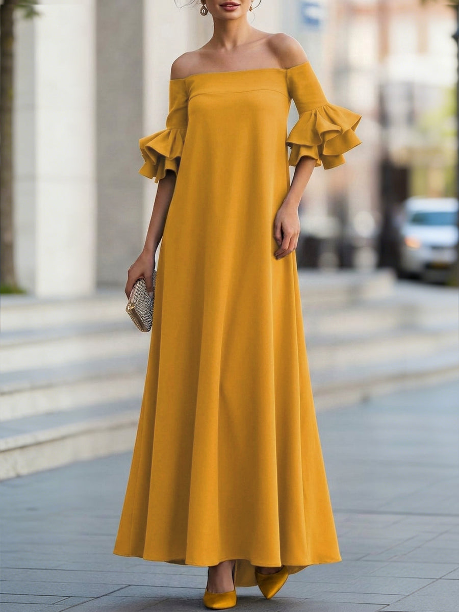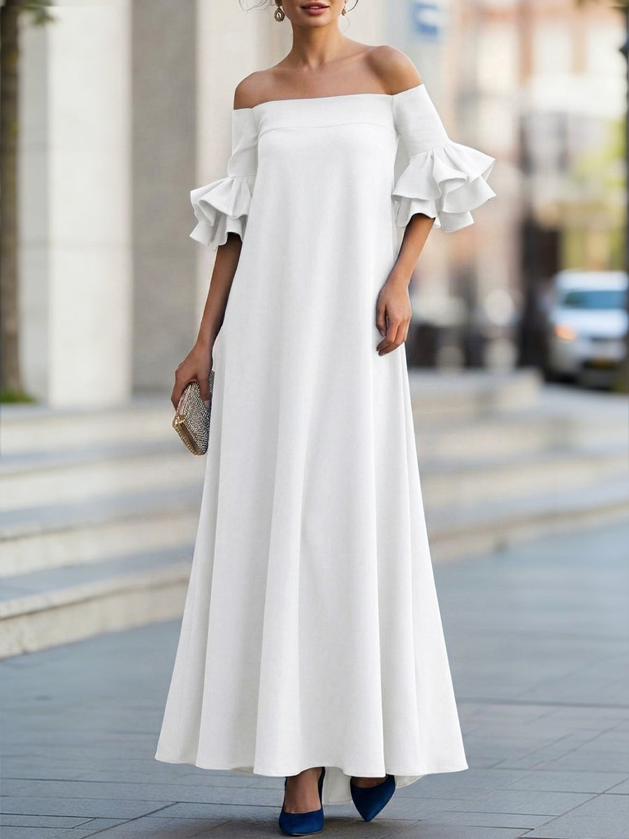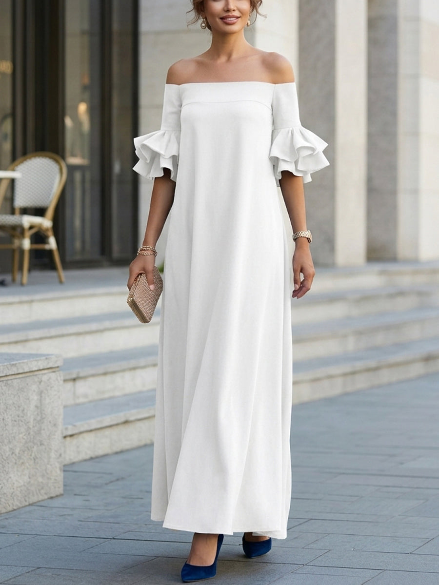 Half Sleeves Loose Solid Color Off-The-Shoulder Maxi Dresses