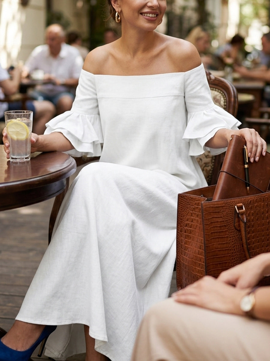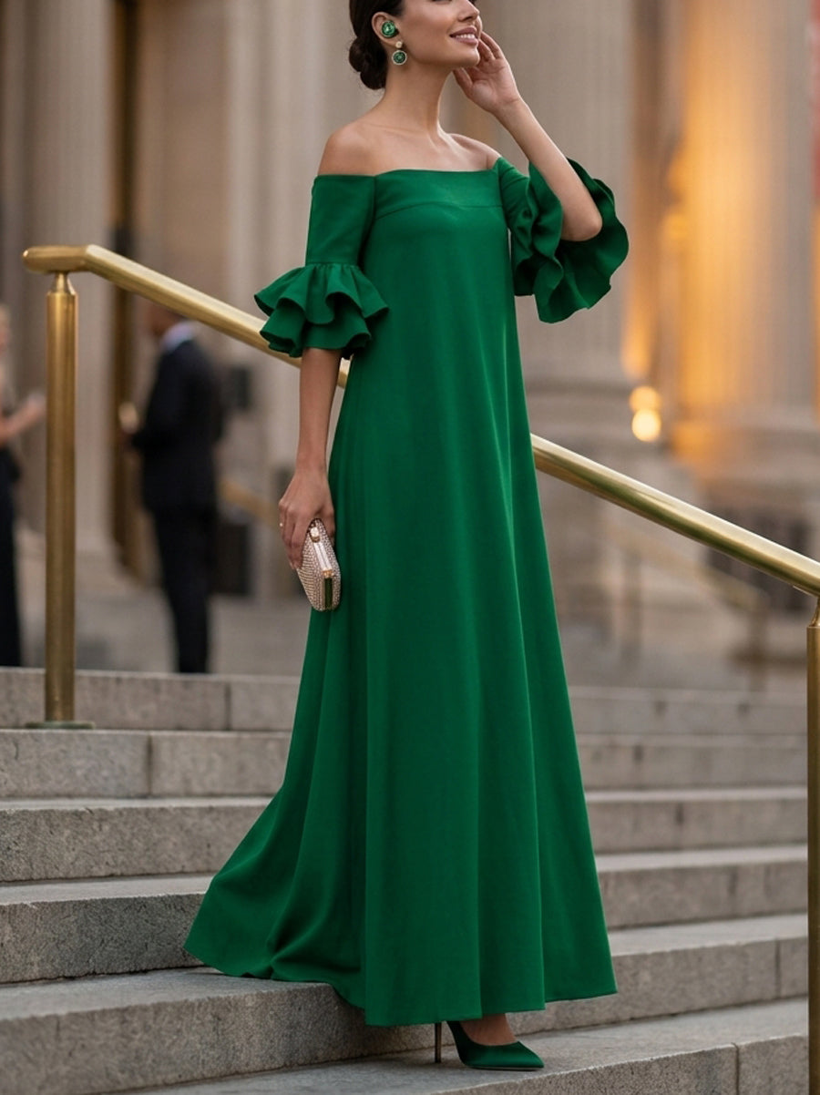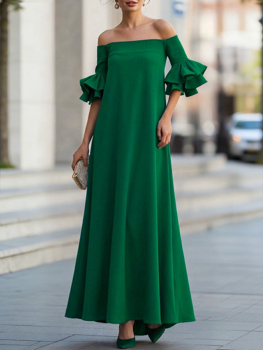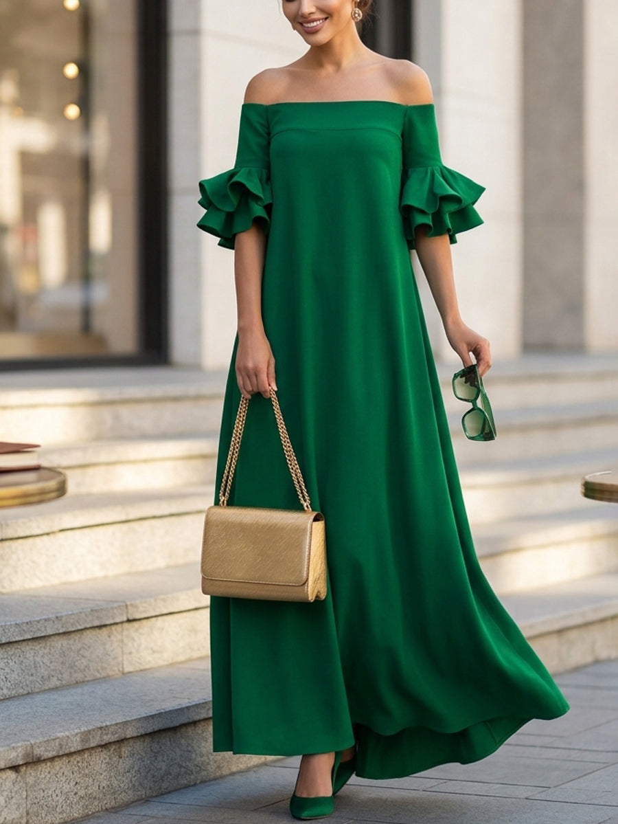 Half Sleeves Loose Solid Color Off-The-Shoulder Maxi Dresses