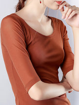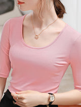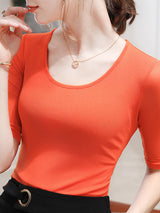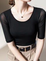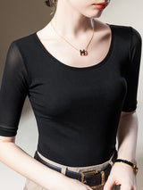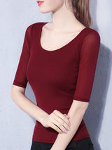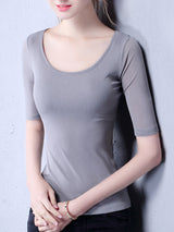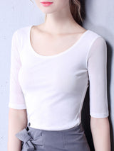 Half Sleeves Plus Size Gauze Solid Color Round-Neck T-Shirts Tops