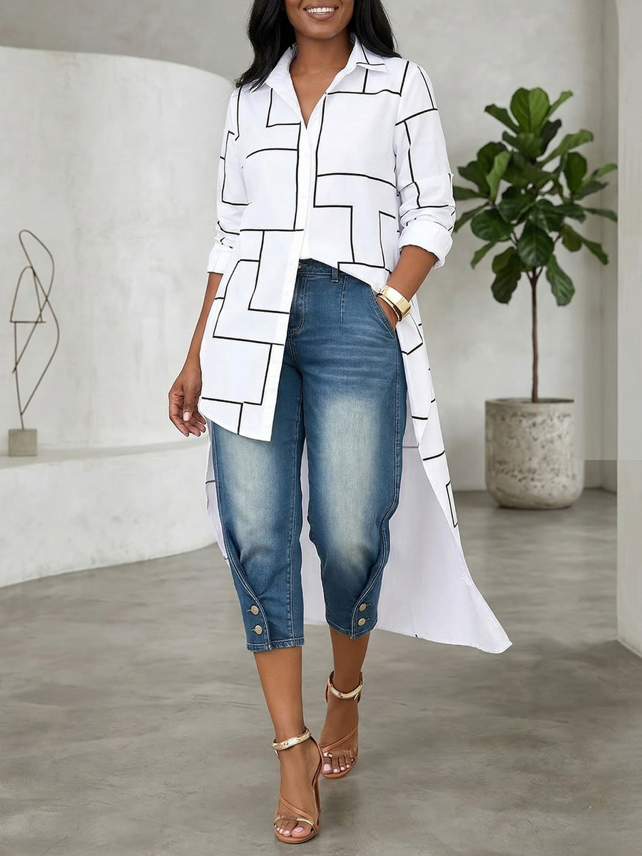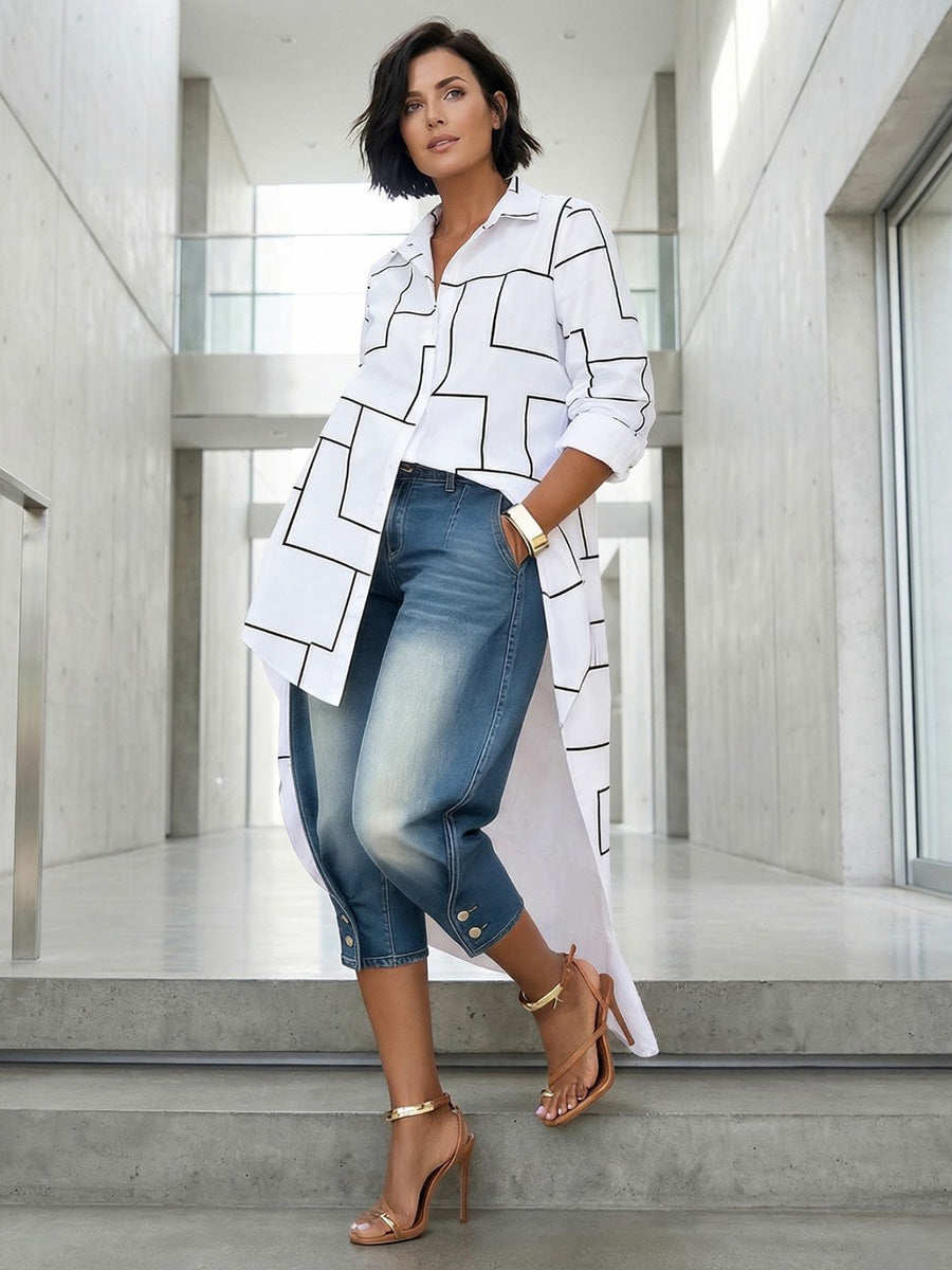 High Waisted Buttoned Pockets Split-Joint Cropped Trousers Jean Pants Bottoms