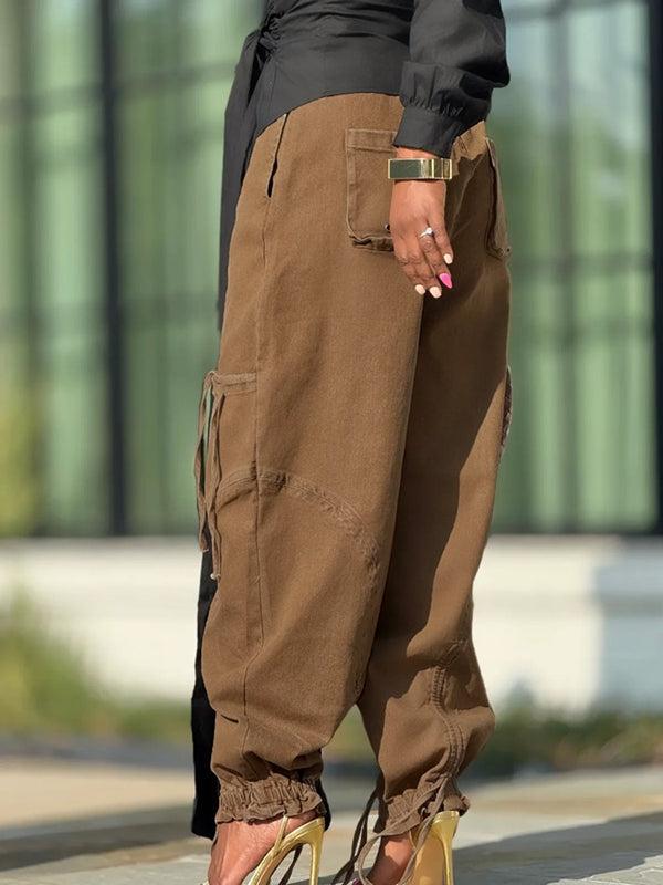 High Waisted Elasticity Pockets Solid Color Jean Pants Bottoms