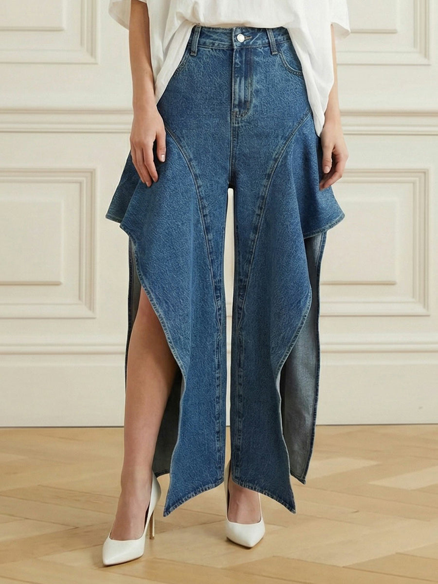 High Waisted Irregularity Solid Color Split-Joint Split-Side Pants