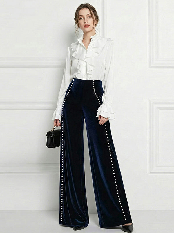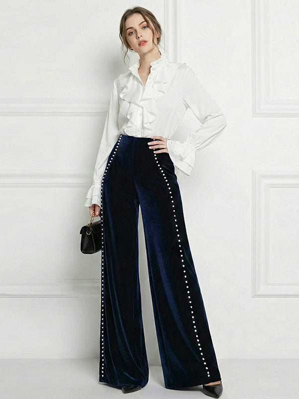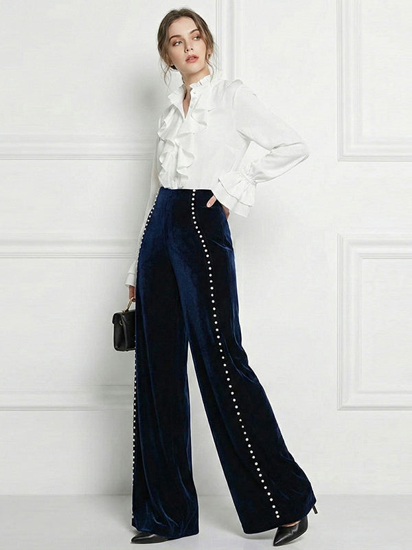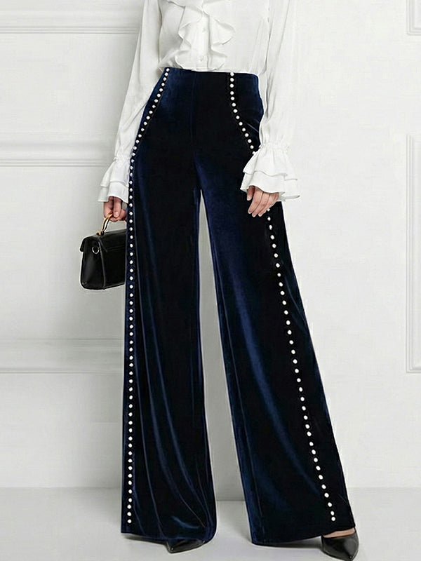 High Waisted Loose Beaded Contrast Color Pockets Split-Joint Webbing Pants