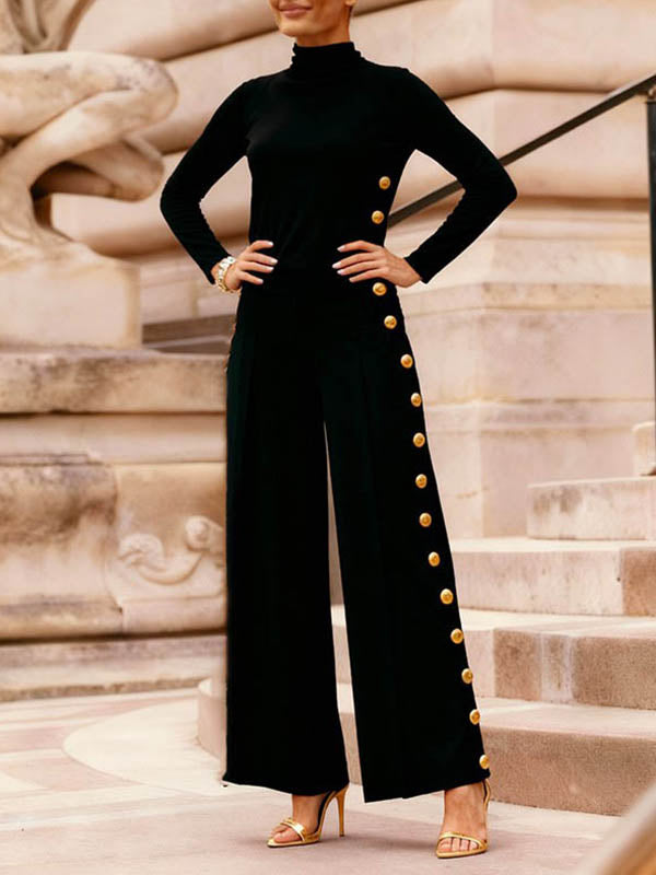 High Waisted Loose Buttoned Contrast Color Split-Joint Blazer Pants