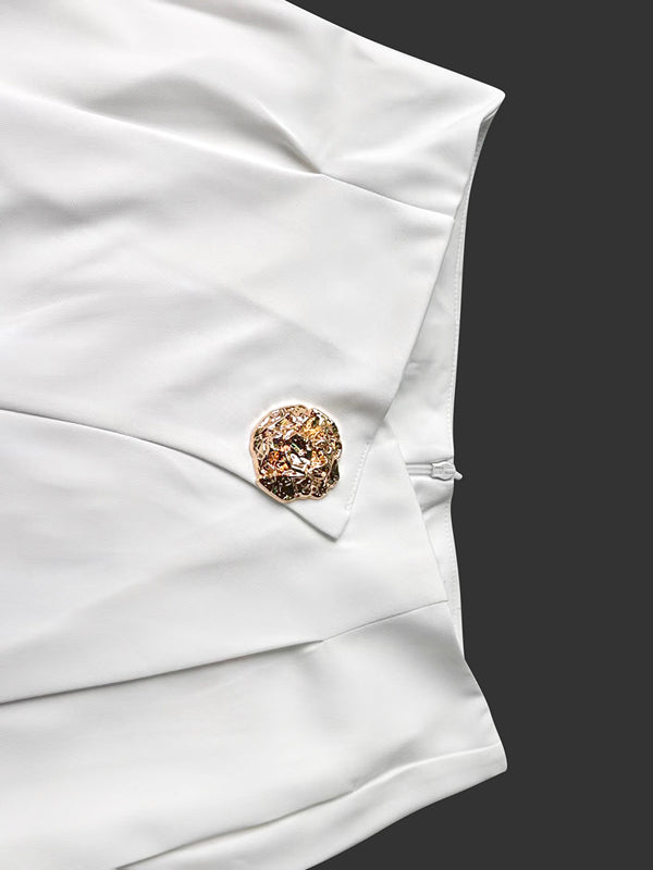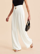 High Waisted Loose Buttoned Pleated Solid Color Pants Trousers