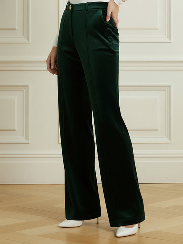 High Waisted Loose Buttoned Pockets Solid Color Pants