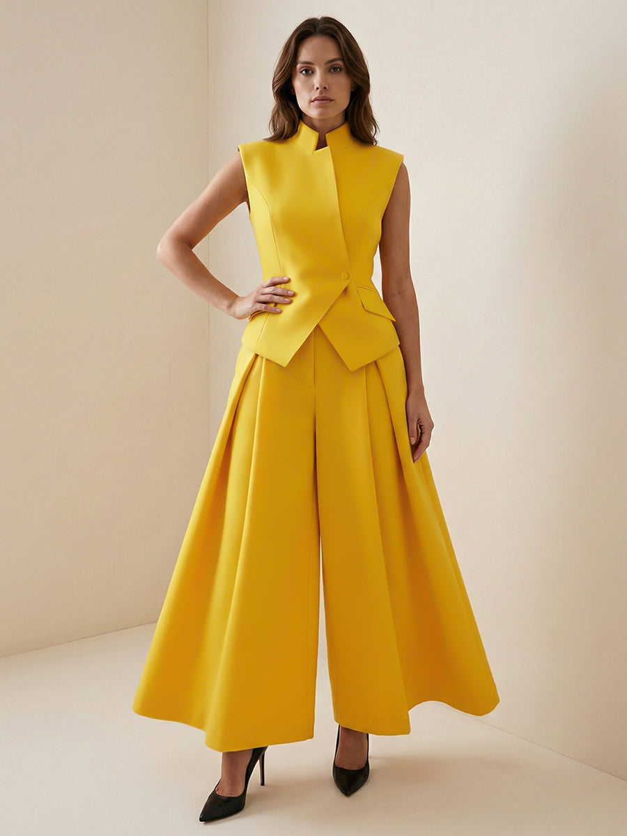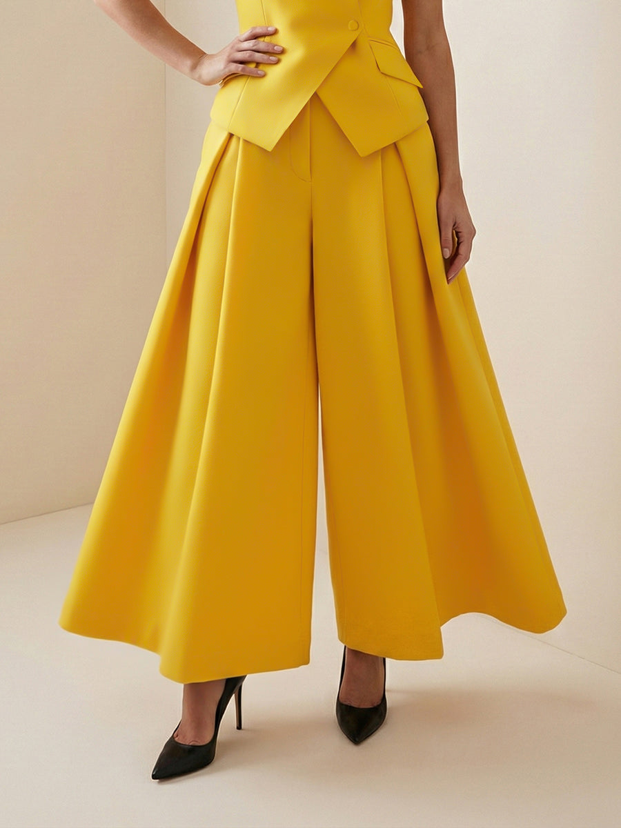 High Waisted Loose Pleated Solid Color Split-Joint Pants