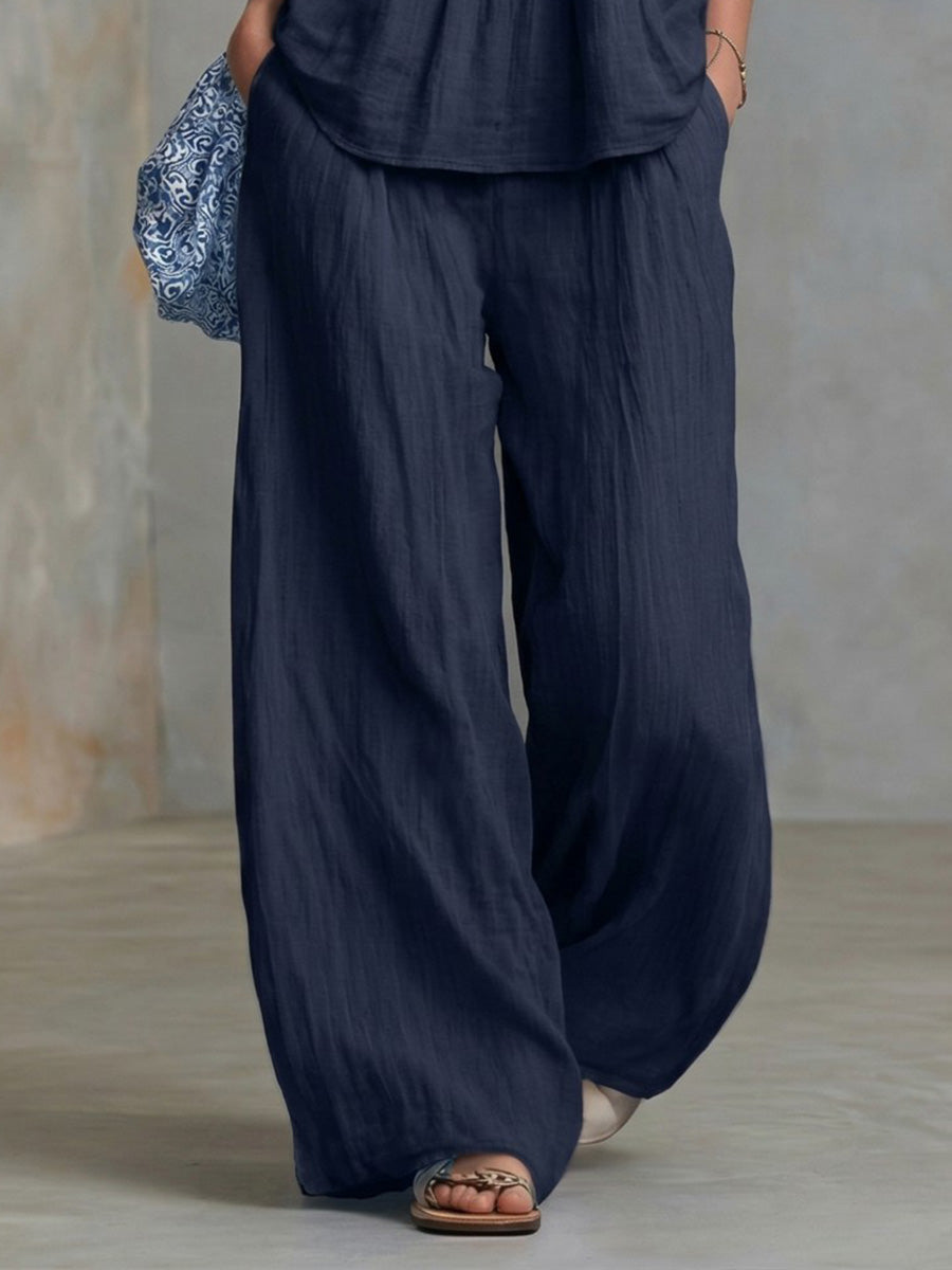 High Waisted Loose Pockets Solid Color Pants Trousers