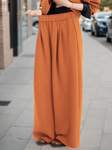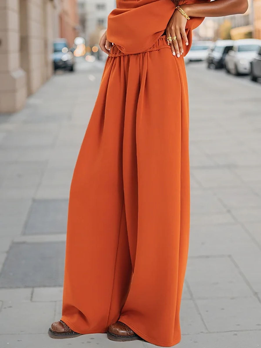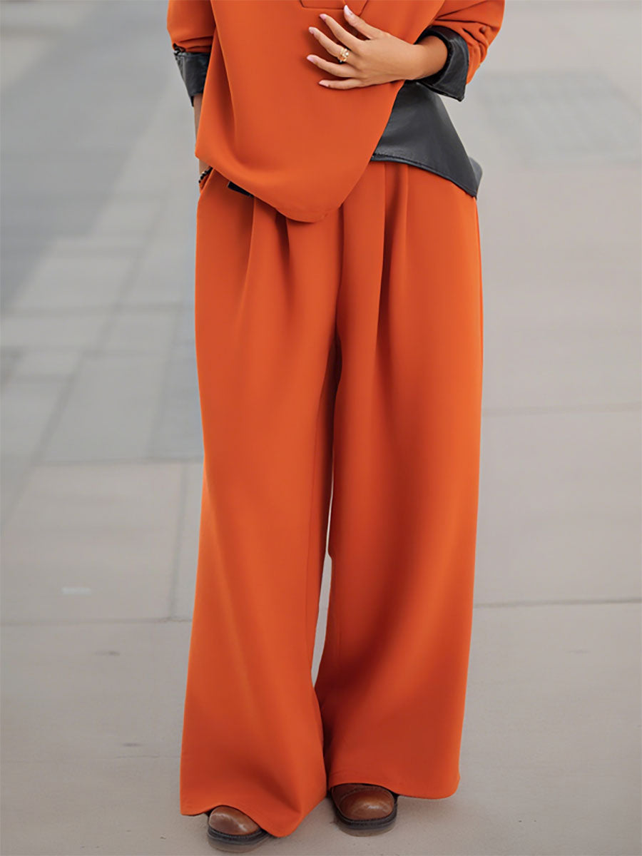 High Waisted Wide Leg Elasticity Pleated Solid Color Pants Trousers