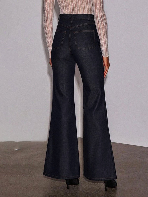 High Waisted Wide Leg Pockets Solid Color Jean Pants Bottoms