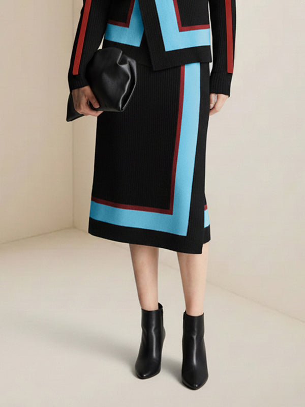 Irregularity Asymmetric Contrast Color Split-Joint Skirts Bottoms