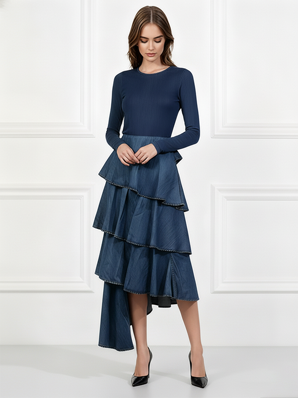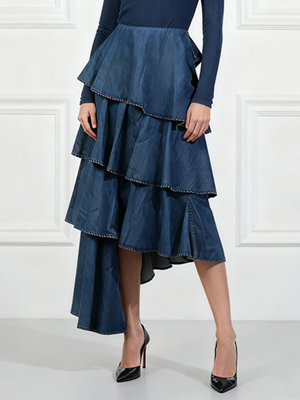 Irregularity Asymmetric Layered Pleated Ruffled Solid Color Split-Joint Skirts