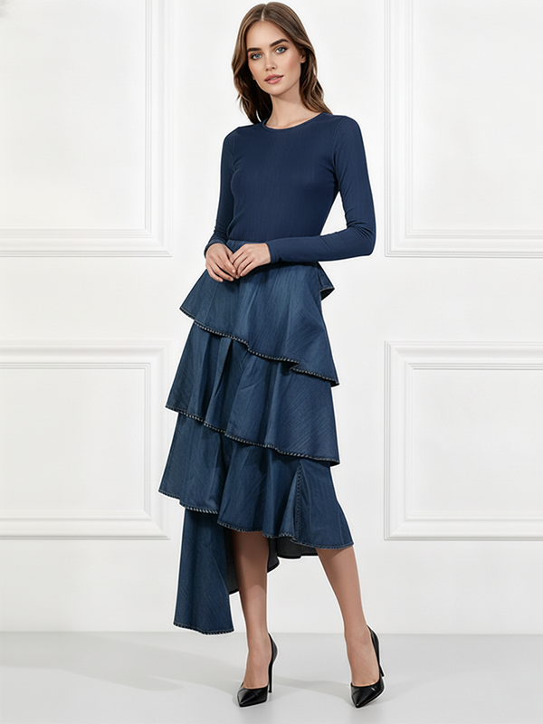 | Feature | Layered , Pleated , Asymmetric , Ruffled , Split-joint , Solid Color |