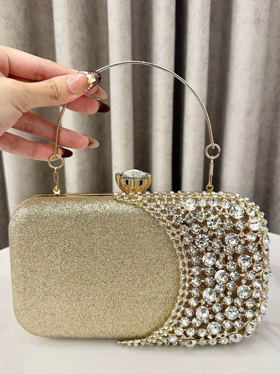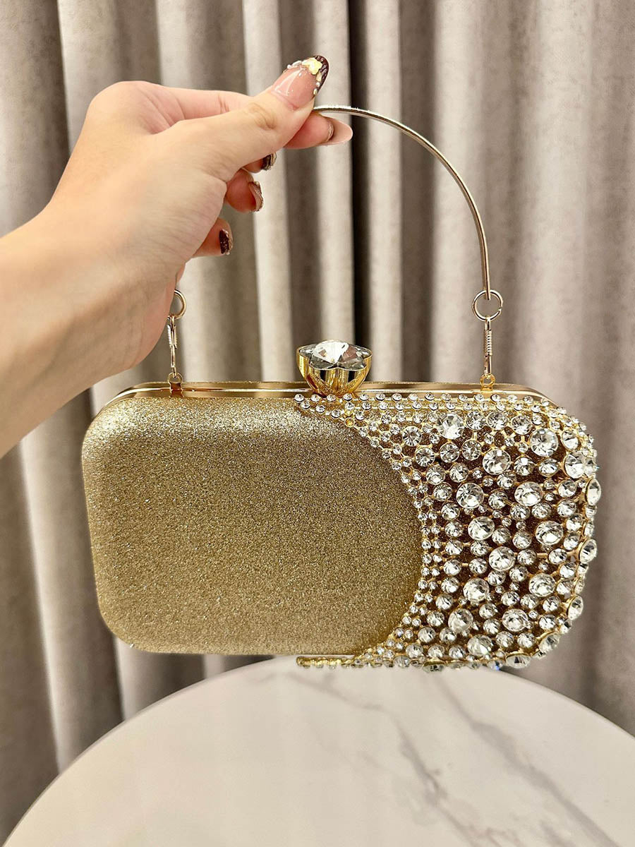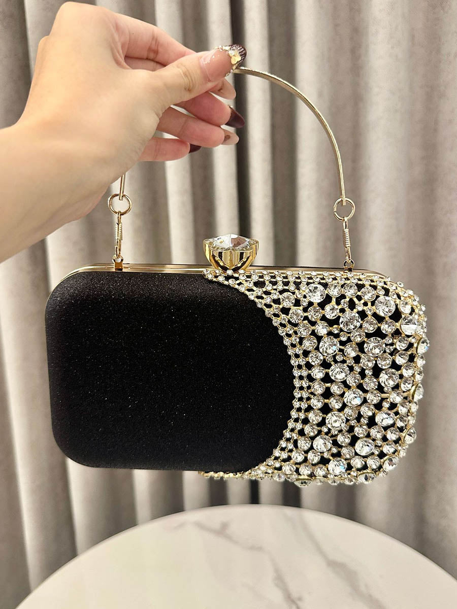 Irregularity Chains Geometric Lock Rhine Stones Shiny Crossbody Bags Evening Bags & Clutches