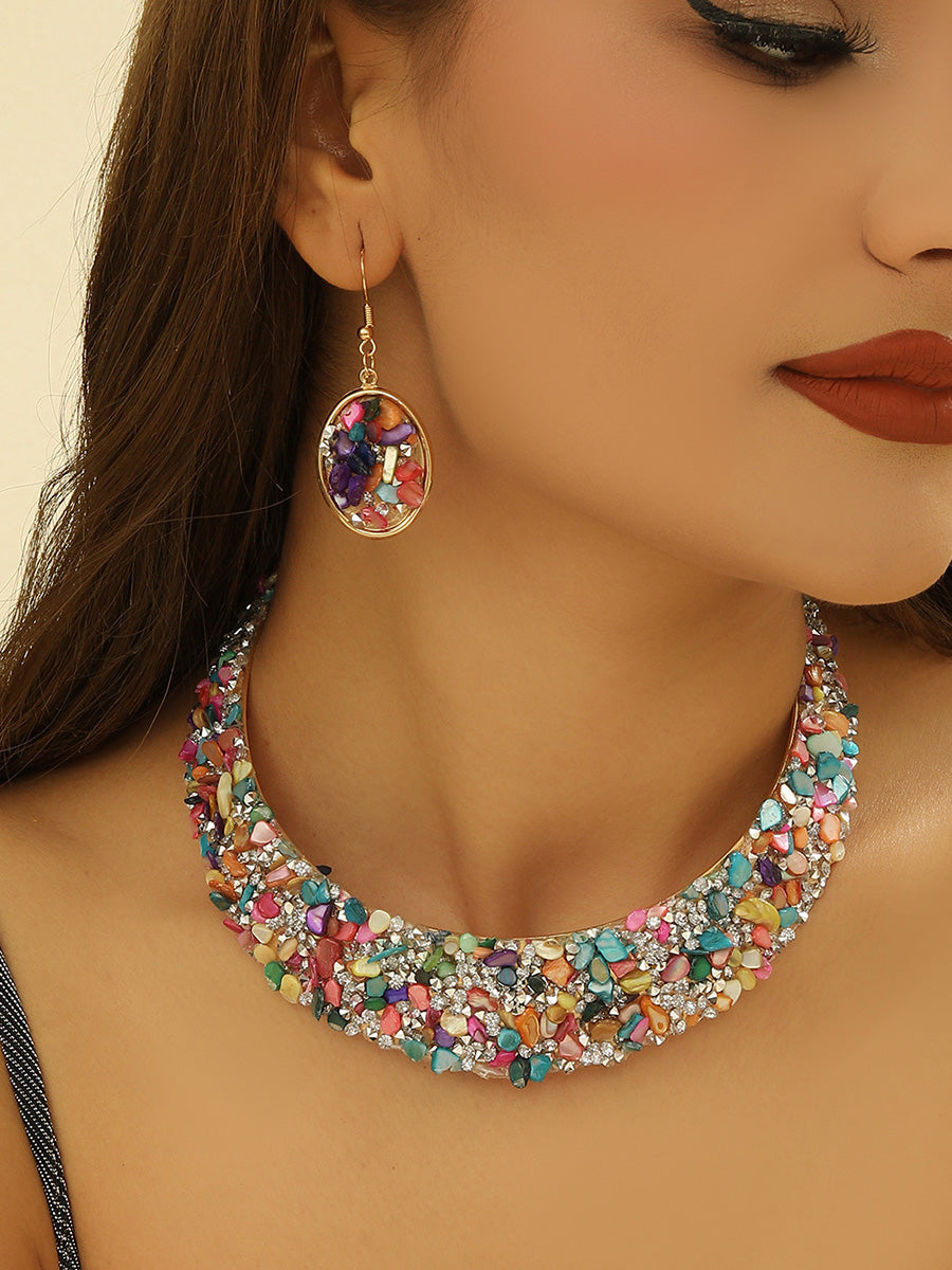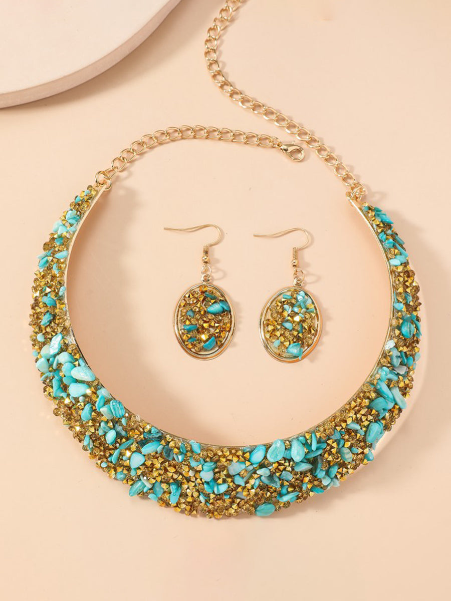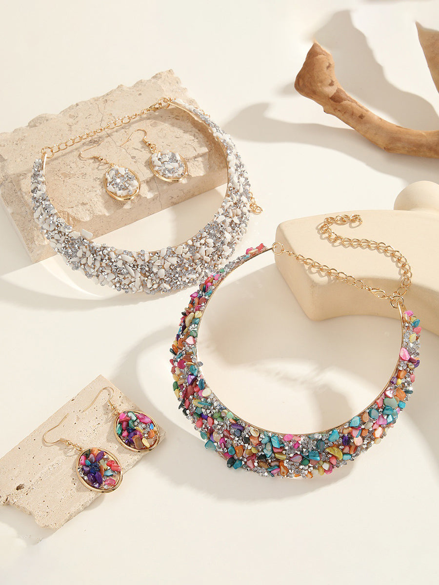 Irregularity Geometric Rhine Stones Shiny Earrings Accessories Necklaces Accessories Sets