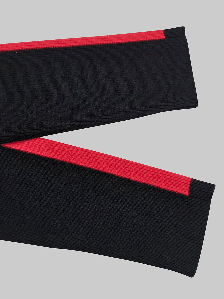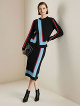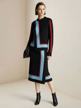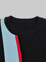 Irregularity Long Sleeves Abstract Printed Asymmetric Contrast Color Ribs Split-Joint Round-Neck Sweater Tops