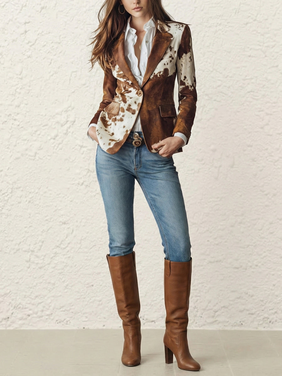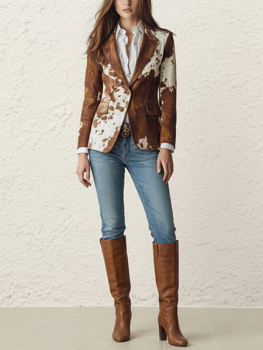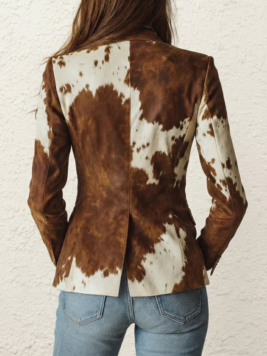 Long Sleeves Buttoned Contrast Color Pockets Printed Split-Back Notched Collar Blazer Outerwear