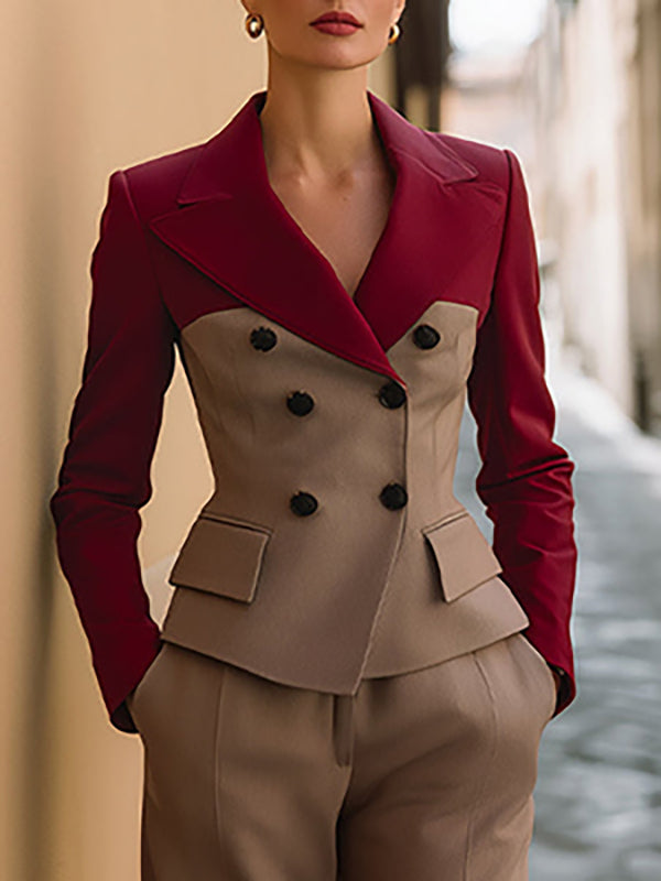 Long Sleeves Buttoned Contrast Color Pockets Split-Joint Lapel Outerwear
