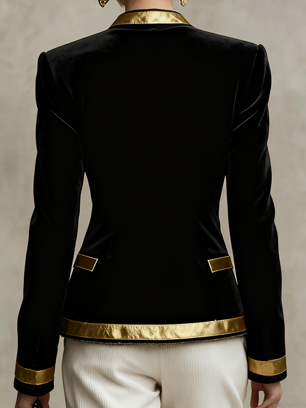 Long Sleeves Buttoned Contrast Color Split-Joint Round-Neck Jackets Outerwear