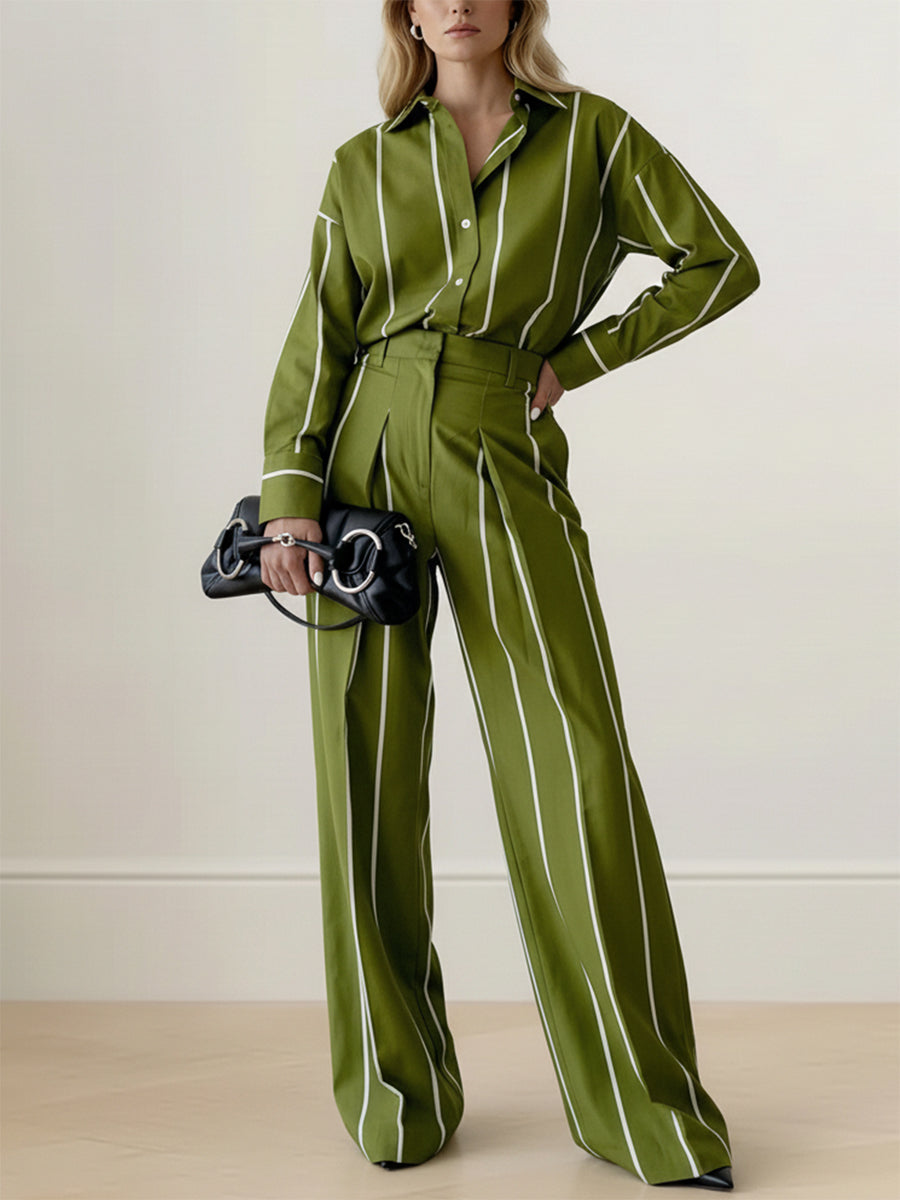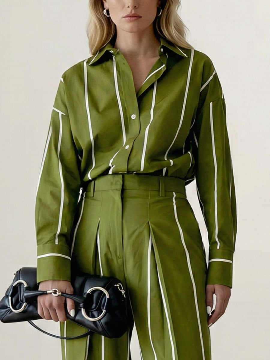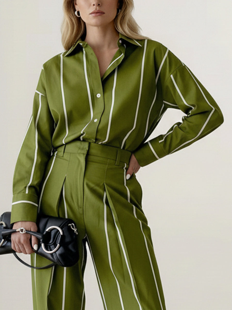 Long Sleeves Buttoned Contrast Color Striped Lapel Blouses&Shirts Tops