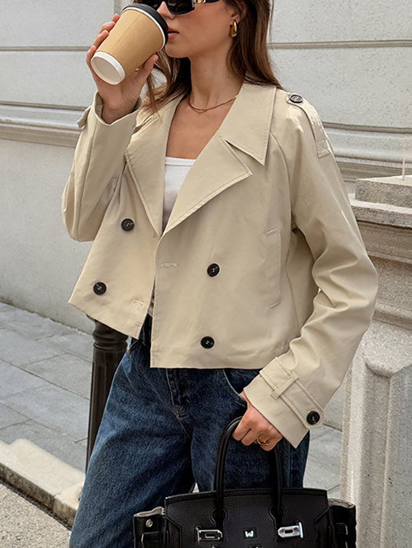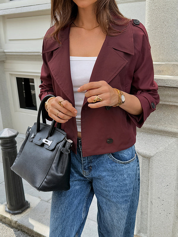 Long Sleeves Buttoned Solid Color Split-Joint Notched Collar Jackets&Coats Outerwear