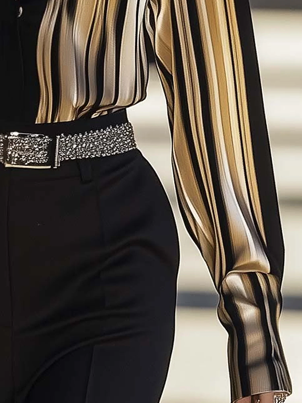 Long Sleeves Buttoned Striped Lapel Blouses&Shirts Tops
