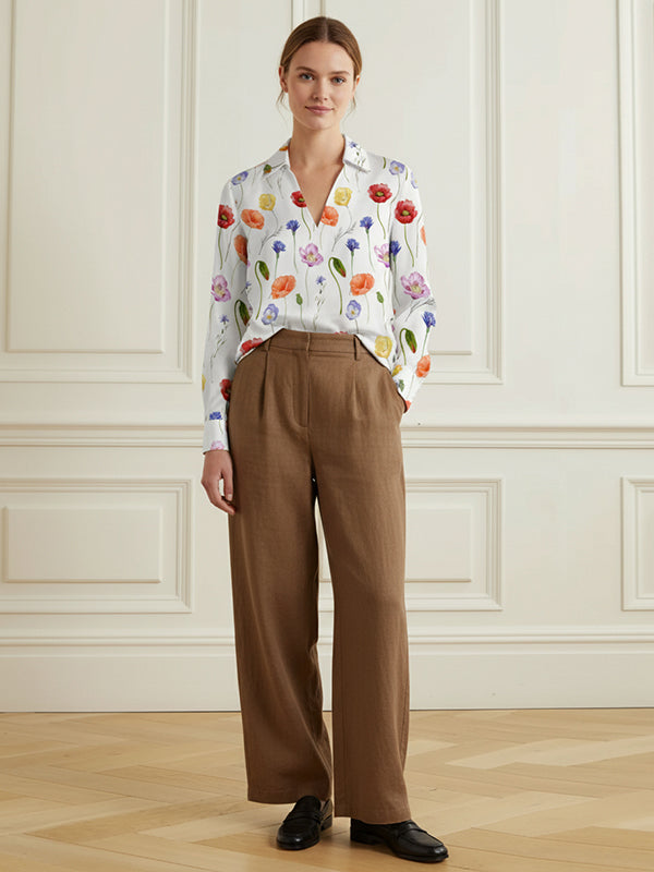 Long Sleeves Flower Print V-Neck Blouses&Shirts Tops
