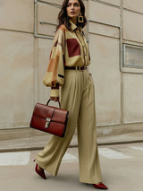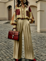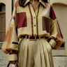 Long Sleeves Loose Buttoned Contrast Color Plaid Lapel Blouses&Shirts Tops