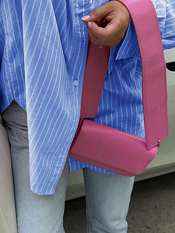Long Sleeves Loose Buttoned Contrast Color Pockets Striped Lapel Blouses&Shirts Tops
