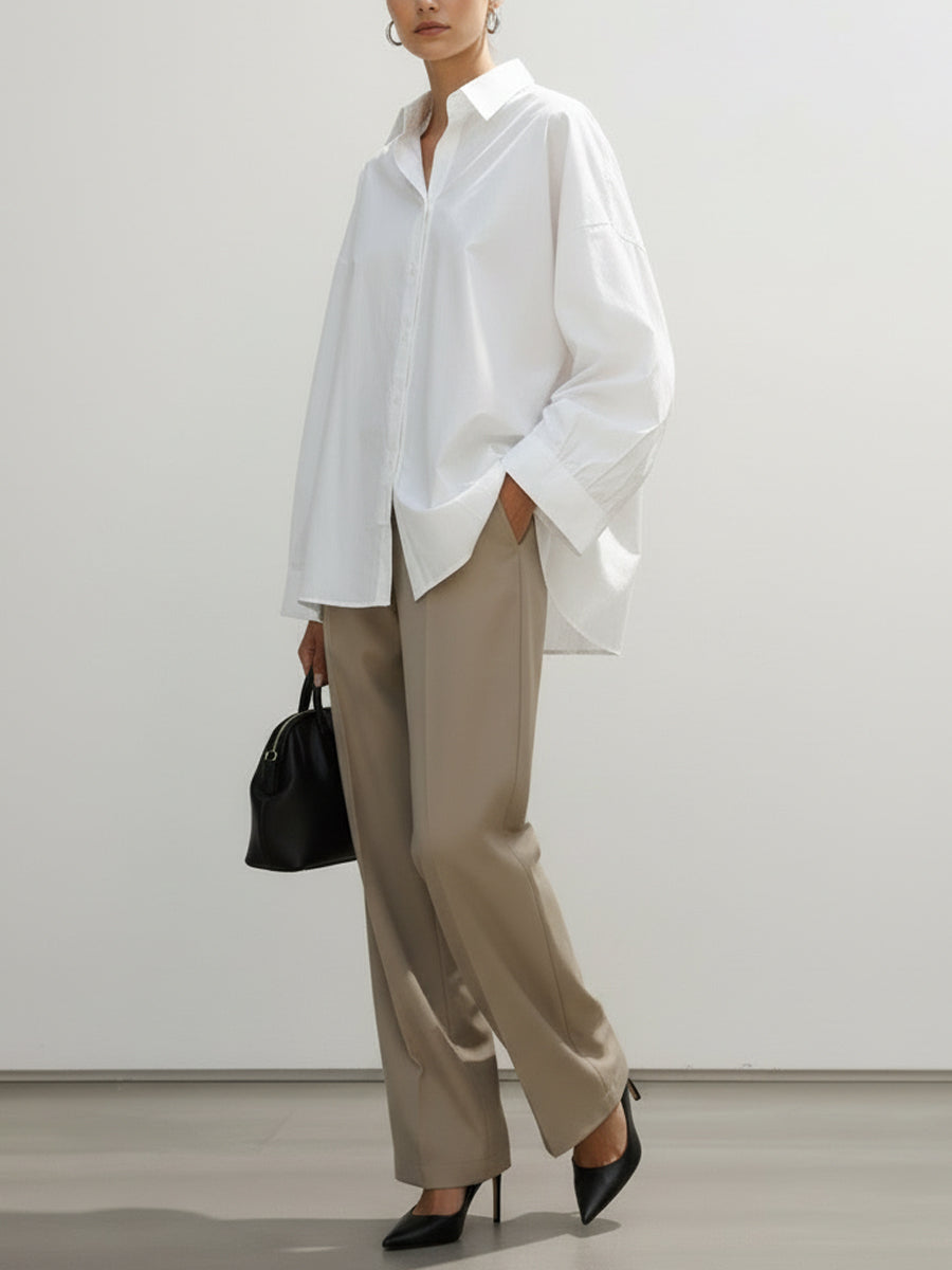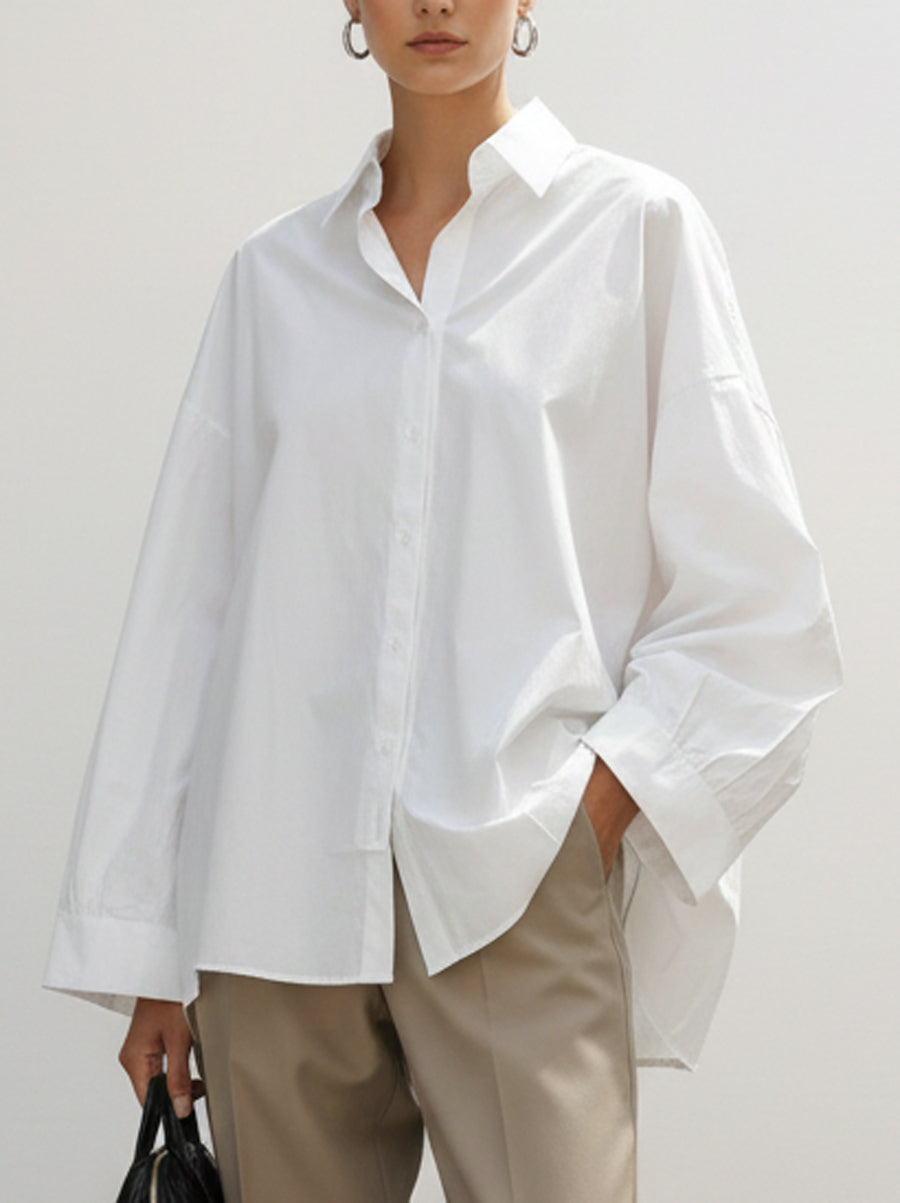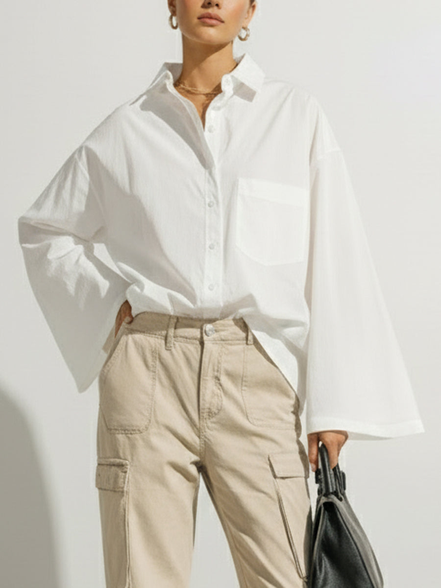 Long Sleeves Loose Buttoned Pockets Solid Color Lapel Blouses&Shirts Tops