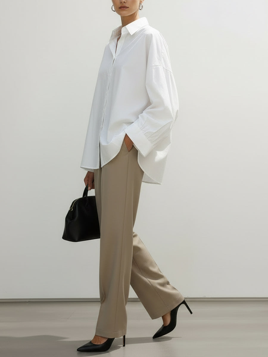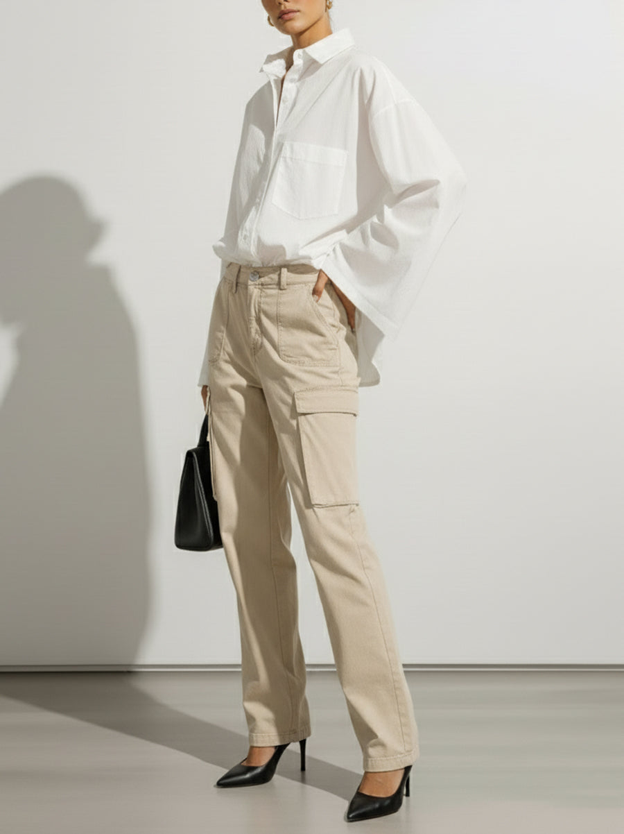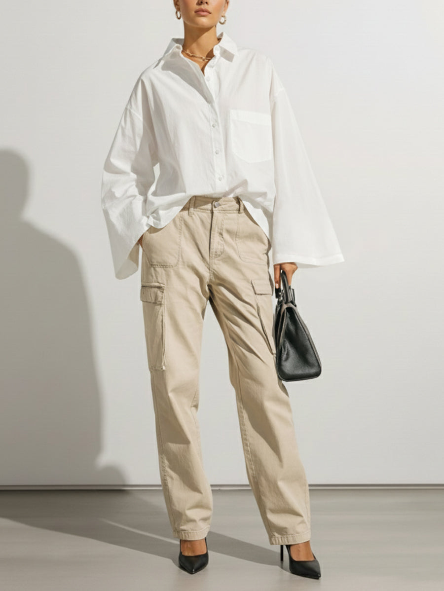 Long Sleeves Loose Buttoned Pockets Solid Color Lapel Blouses&Shirts Tops