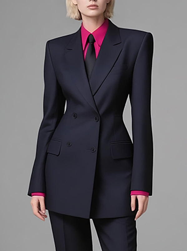Long Sleeves Loose Buttoned Pockets Solid Color Notched Collar Blazer Outerwear