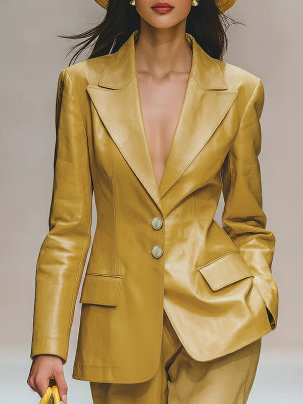 Long Sleeves Loose Buttoned Pockets Solid Color Notched Collar Blazer Outerwear