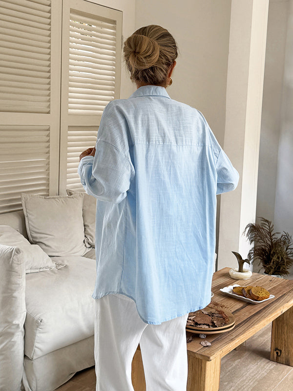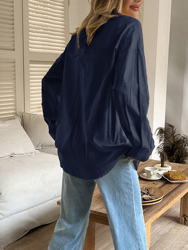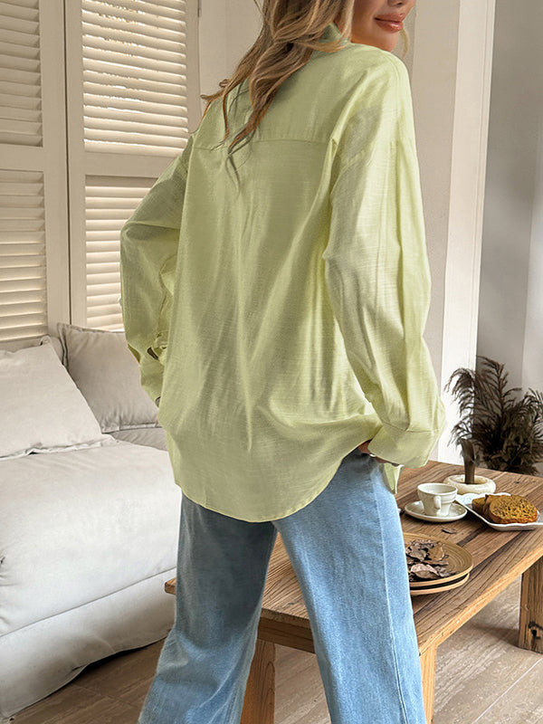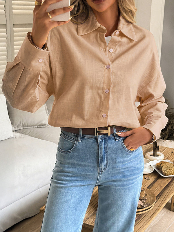 Long Sleeves Loose Buttoned Solid Color Lapel Blouses&Shirts Tops