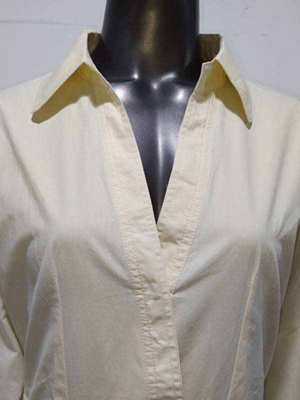 Long Sleeves Loose Buttoned Solid Color Lapel Midi Dresses