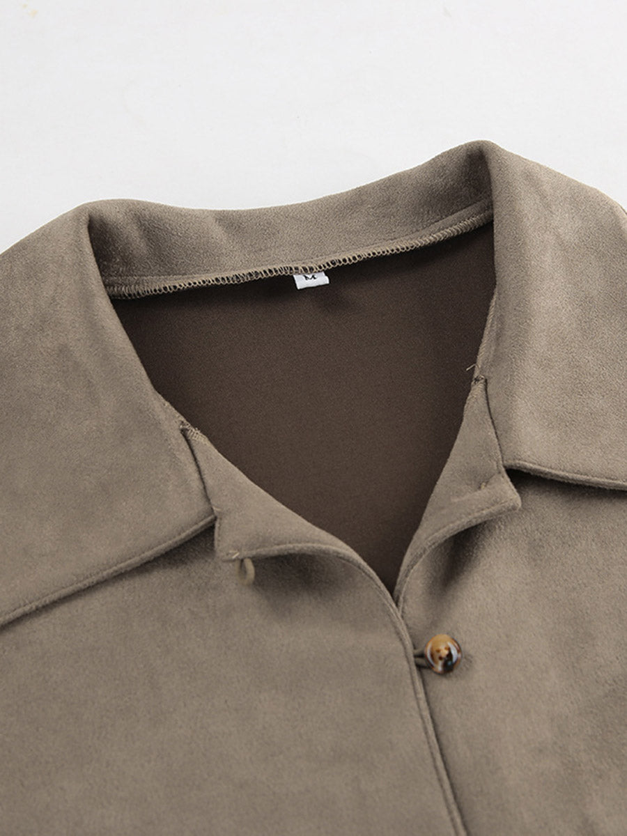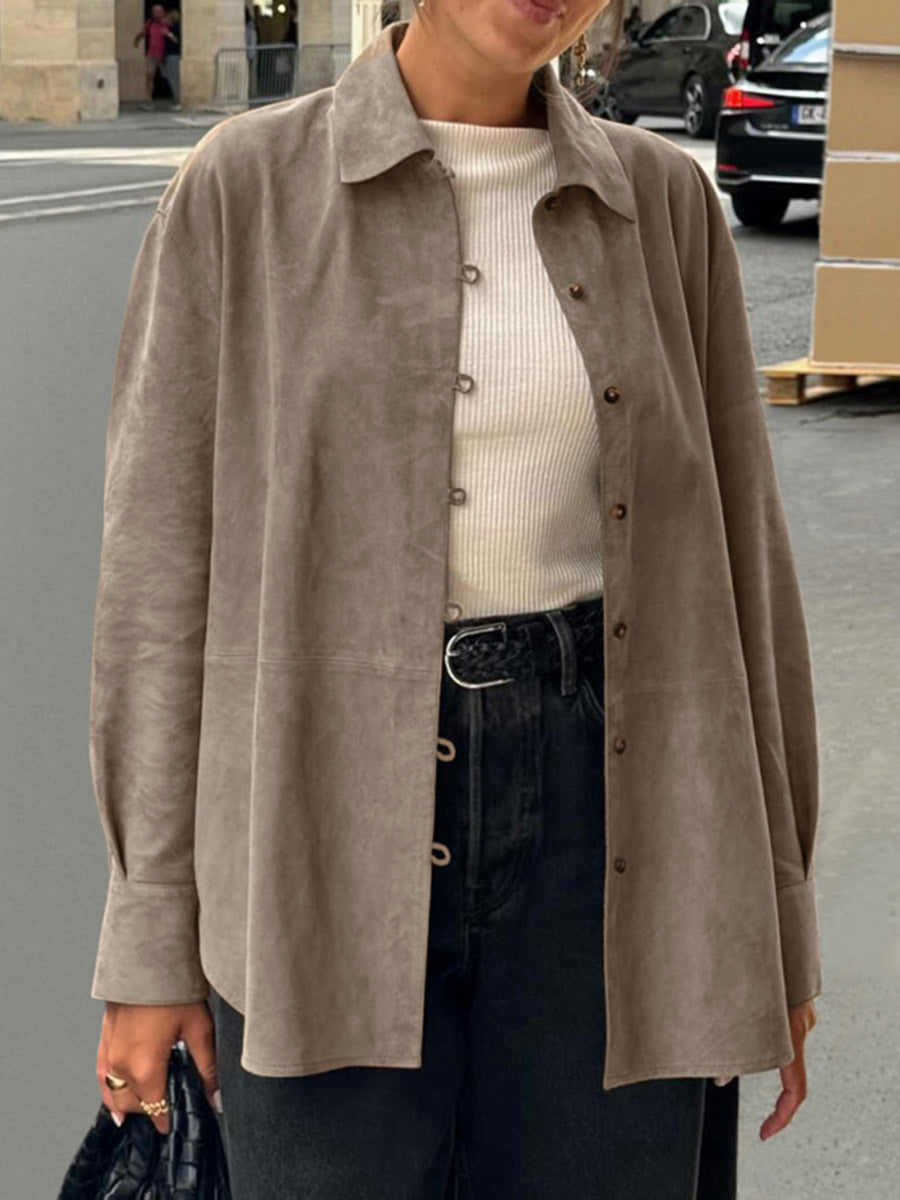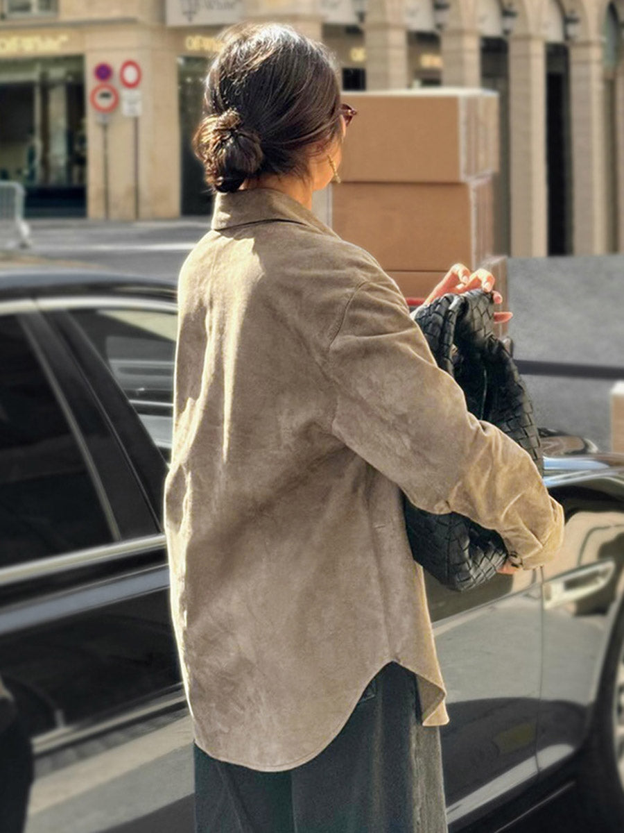 Long Sleeves Loose Buttoned Solid Color Split-Joint Lapel Blouses&Shirts Tops Outerwear