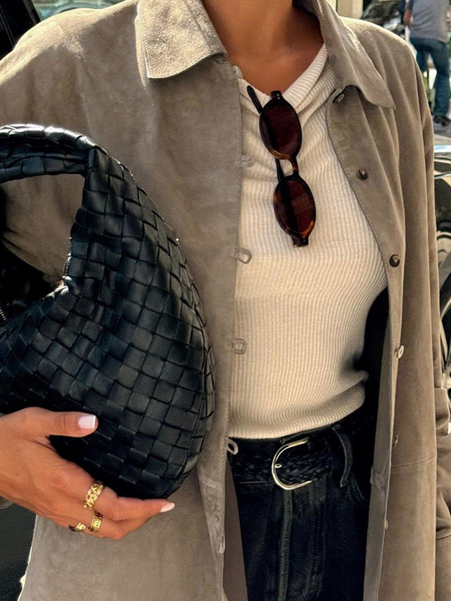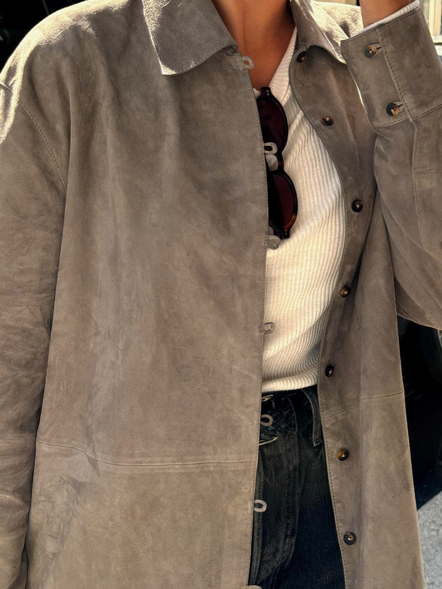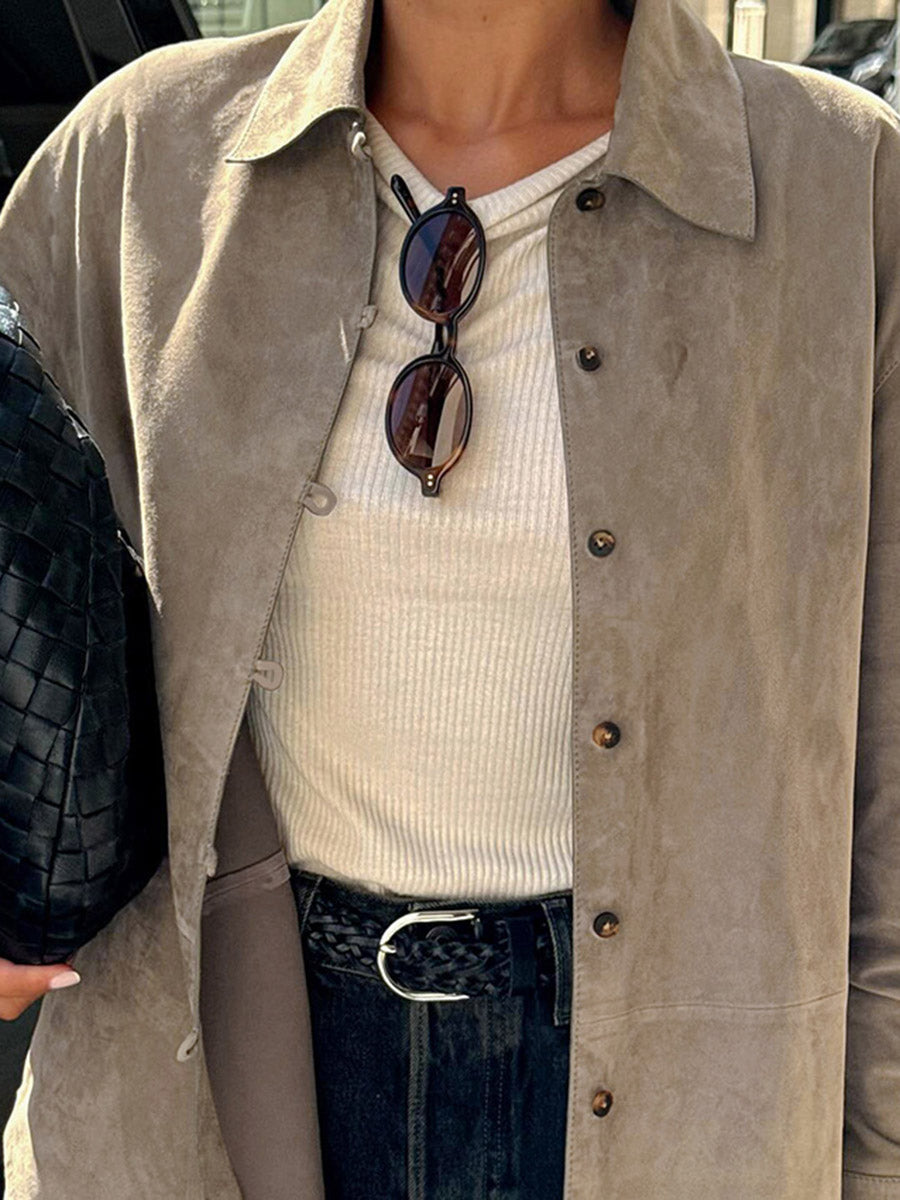 Long Sleeves Loose Buttoned Solid Color Split-Joint Lapel Blouses&Shirts Tops Outerwear