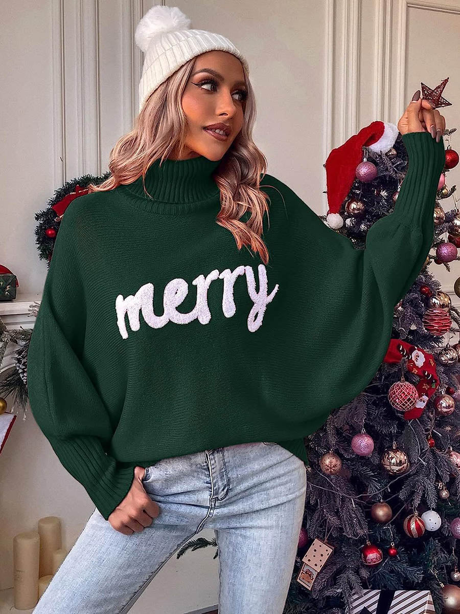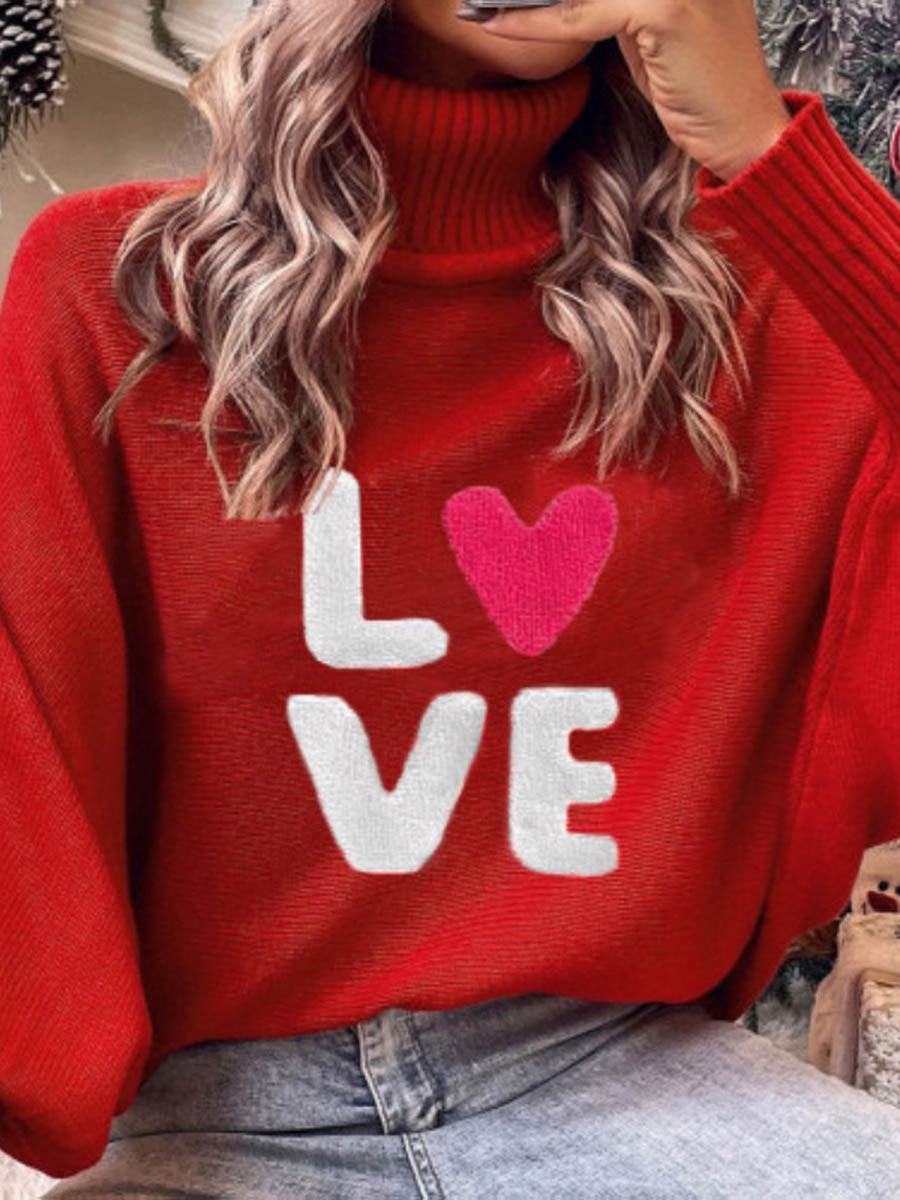 Long Sleeves Loose Contrast Color Printed Split-Joint High Neck Sweater Tops