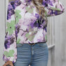 Long Sleeves Loose Elasticity Flower Print Pleated Mock Neck Blouses&Shirts Tops