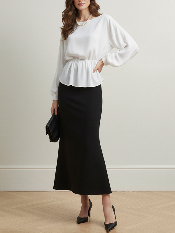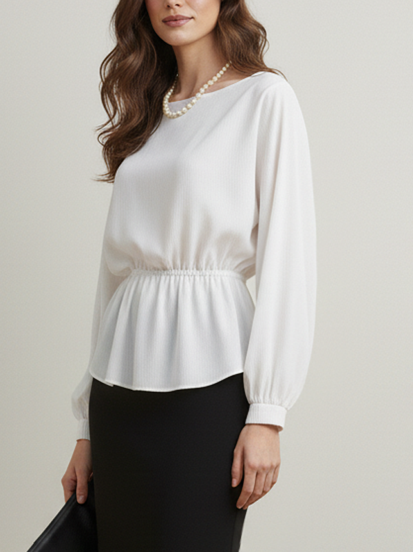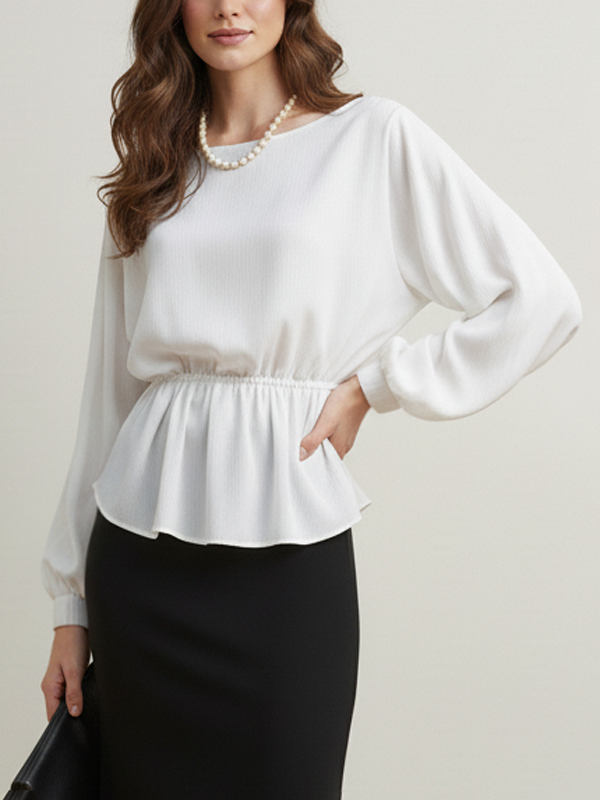 Long Sleeves Loose Elasticity Solid Color Round-Neck Blouses&Shirts Tops