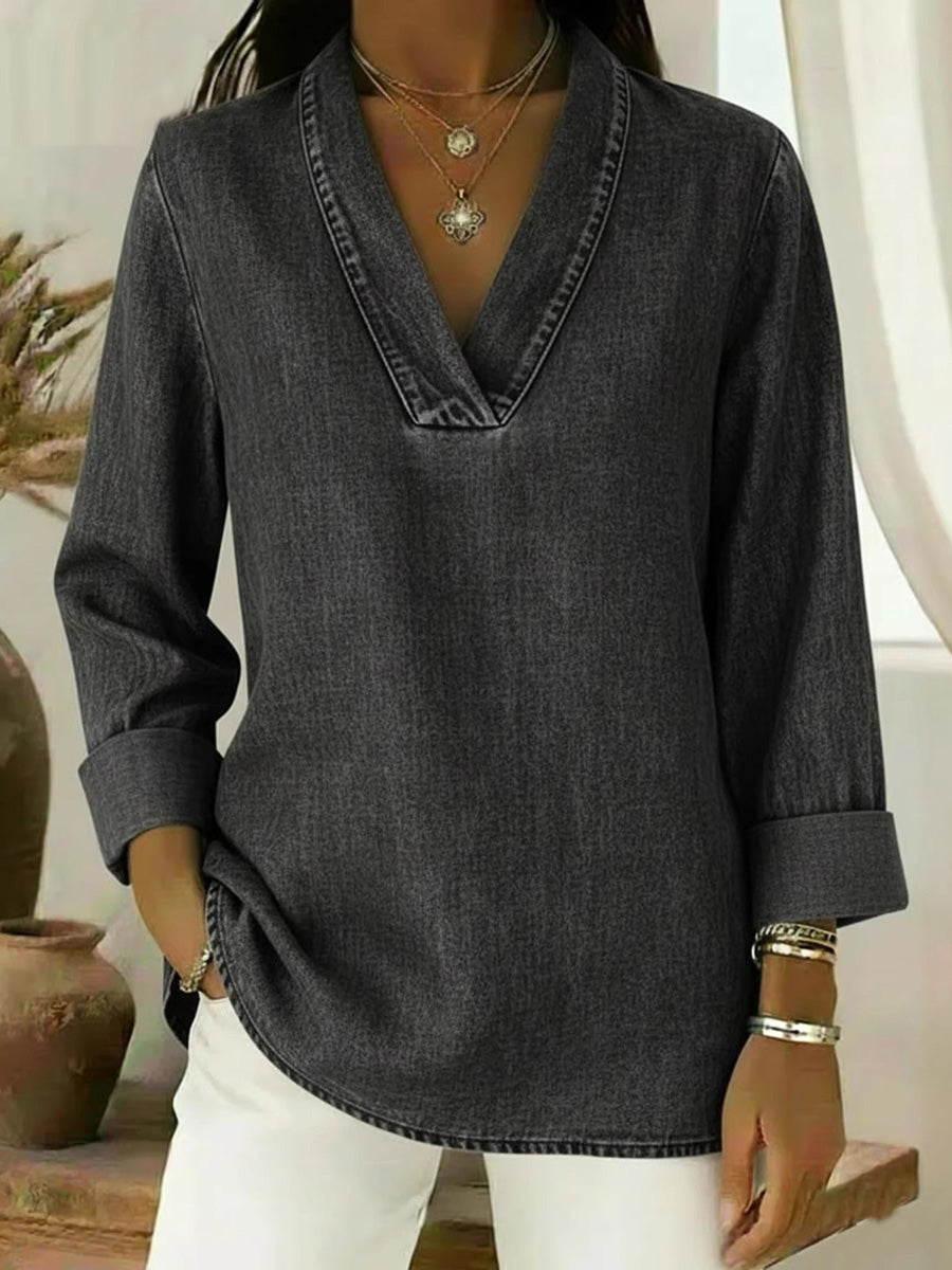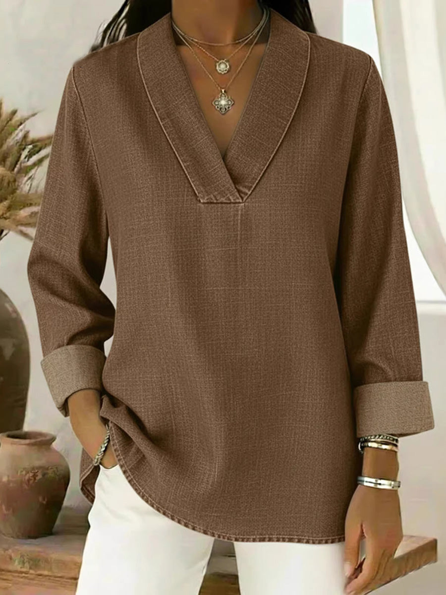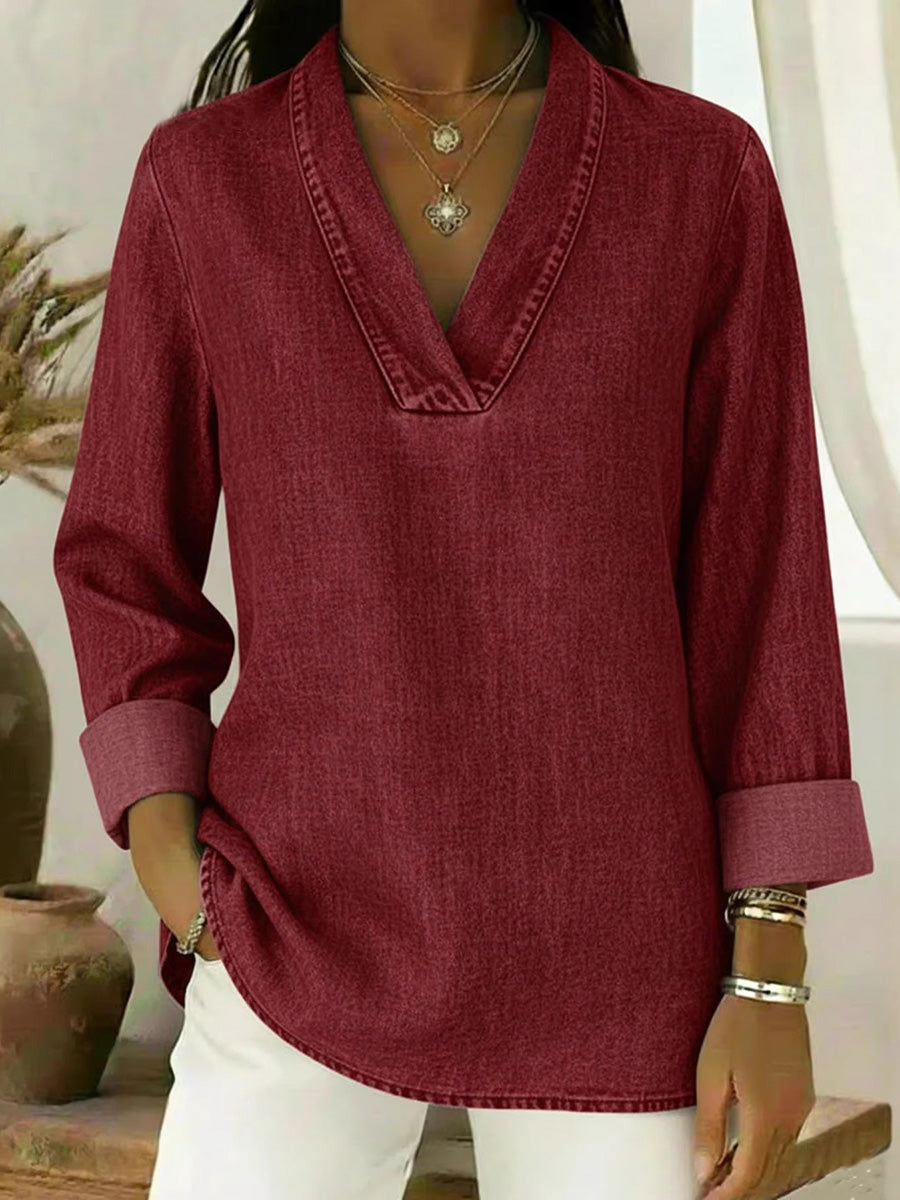 Long Sleeves Loose Solid Color V-Neck Blouses&Shirts Tops
